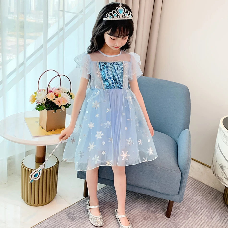 Наименование: платье Эльзы; Сетчатое платье принцессы с блестками для девочек; Нарядные Вечерние платья на День рождения; Детский костюм; Костюм Снежной Королевы 2; Elza Vestido Infantil; 2020 Посылка: opp сумки Материал: хлопок, сетка Размер: 100-110-120-130-140-150 Тема: Принцесса Эльза