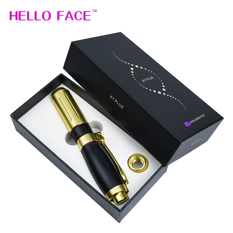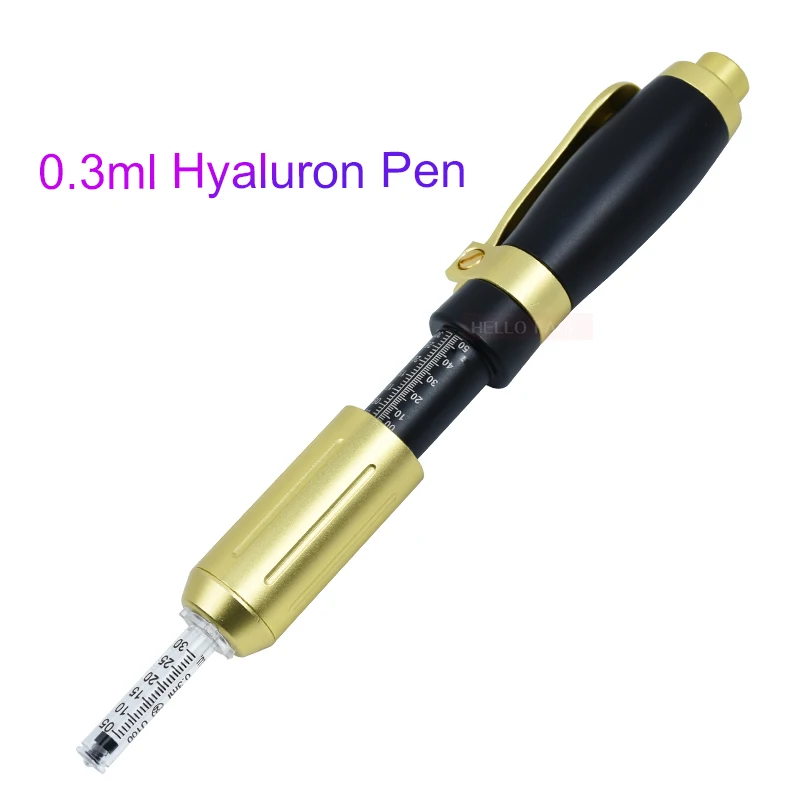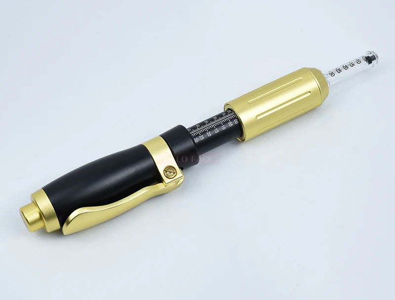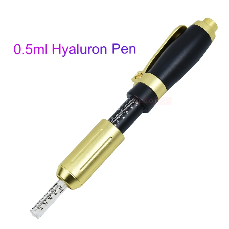 Название продукта: гиалуроновая кислота ручка 0,3 мл и 0,5 мл Цвет: черный + золотой, золотой Материал: нержавеющая сталь 316 7075 алюминий Рабочие места Режим: высокое давление распыливания одной инъекции Параметры: 0,3 мл + 0,5 мл Глубина струи: 6-15 мм Время использования: 8000 раз Новое обновление: Новая регулируемая функция давления, 2 головки