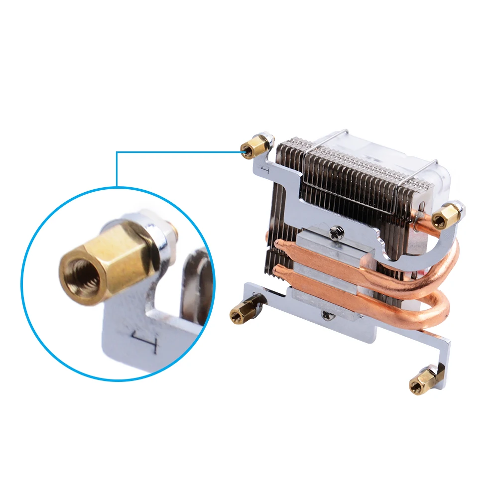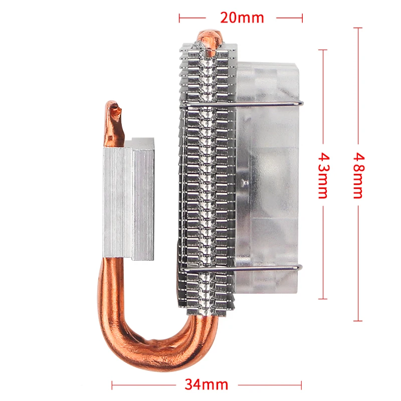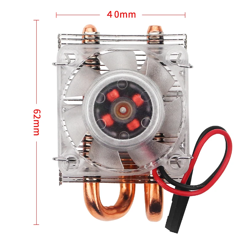 1. Одностворчатый радиатор в башне 2. Питание 5 в постоянного тока (может быть питание от Raspberry Pi) 3. 5 мм медная трубка 4. Супер тепловыделение 5. Номинальная мощность 0,4 Вт @ 5 В, 0.08A 6. Простота установки 7. Акриловая Защитная панель