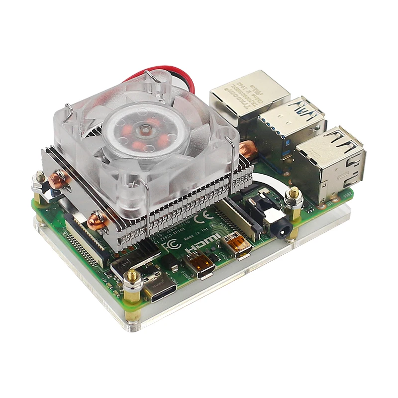1 x Серебряный охлаждающий вентилятор для ледяной башни 1 х Монтажные кронштейны 3 х термолента 1x1 x акриловая Защитная панель 1 комплект винтов и гаек 1 акриловая Защитная панель 1 x Инструкция Металлический Чехол (только для Pi 4)-1 шт. 1 x CE источник питания для Pi 4 1x4K HDMI-совместимый кабель 1 x sd-карта 64 ГБ 1 х USB SD кард-ридер (Не включает Raspberry Pi)
