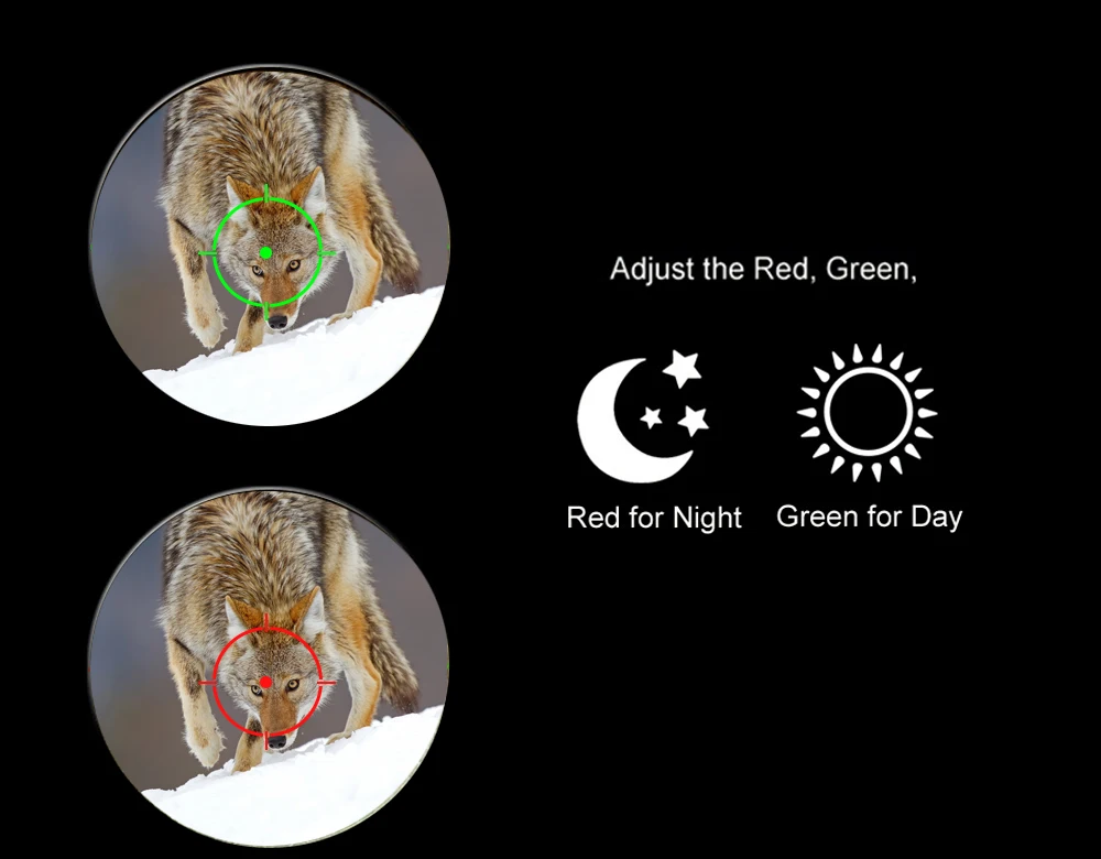 Особенности: Увеличение: 1.0x Диаметр объектива: 30x22мм Длина: 91x50x63мм Поле зрения: 15,8 м @ 100 м Сетка: красная и Зеленая Сетка Руководство: 22 мм