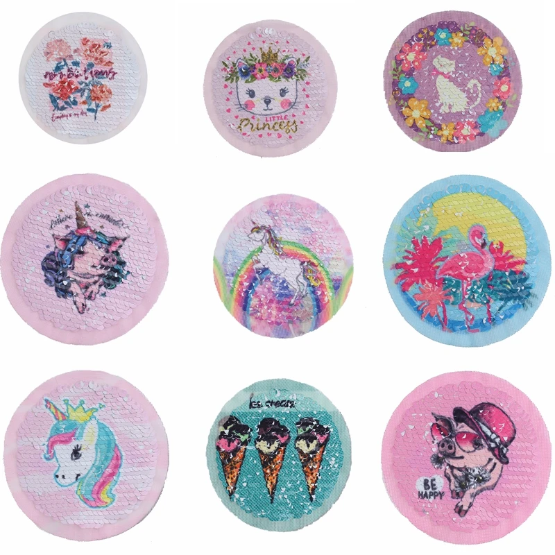 Pulaqi Cartoon Dog Pig Sequin Patch Reversible Embroidered Glitter Patches For Clothes Stripe Stickers Sew On Patch Badge Decors