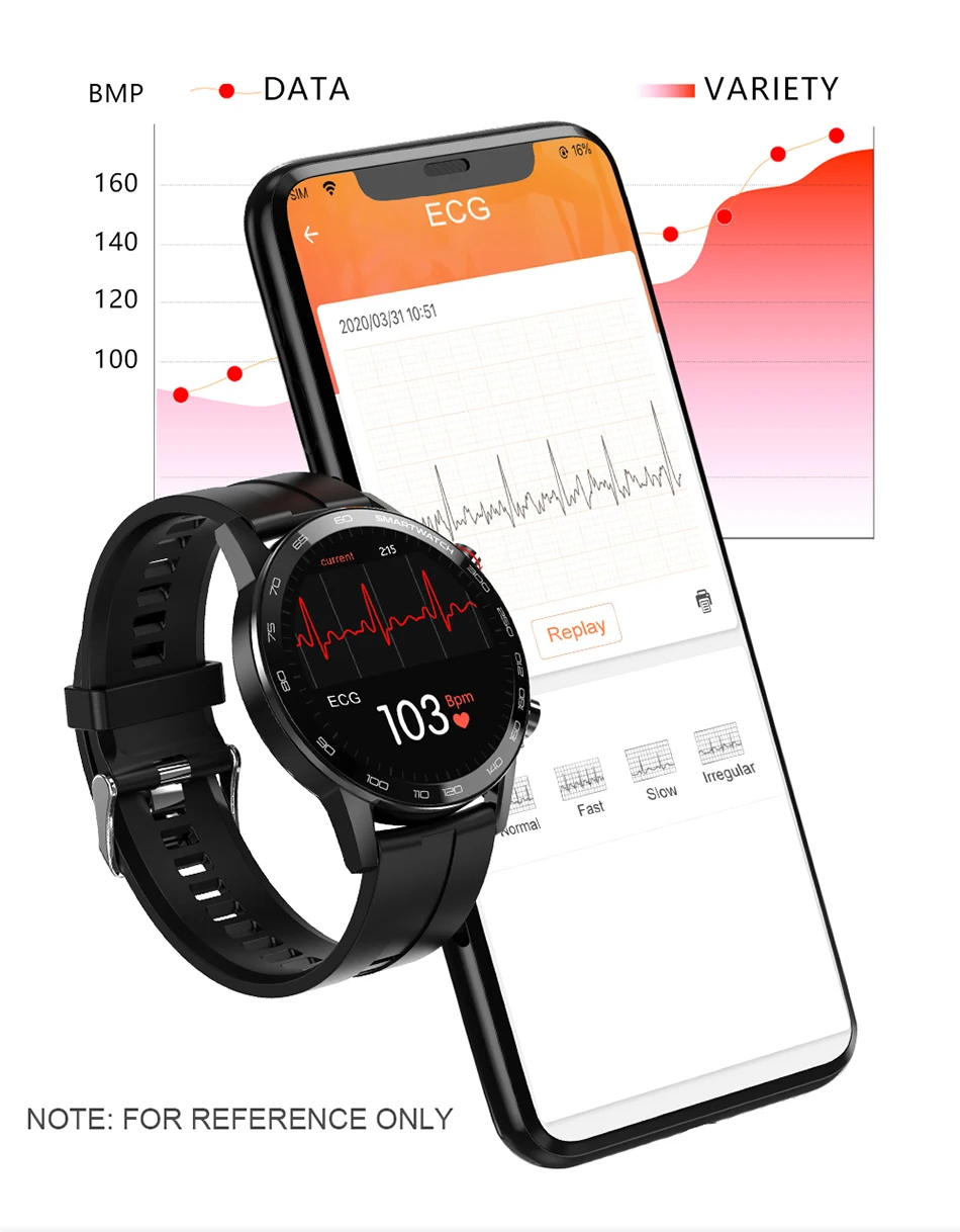 *主要特点:心率、心电图、血压、氧、计步器、秒表、音乐控制,蓝牙相机