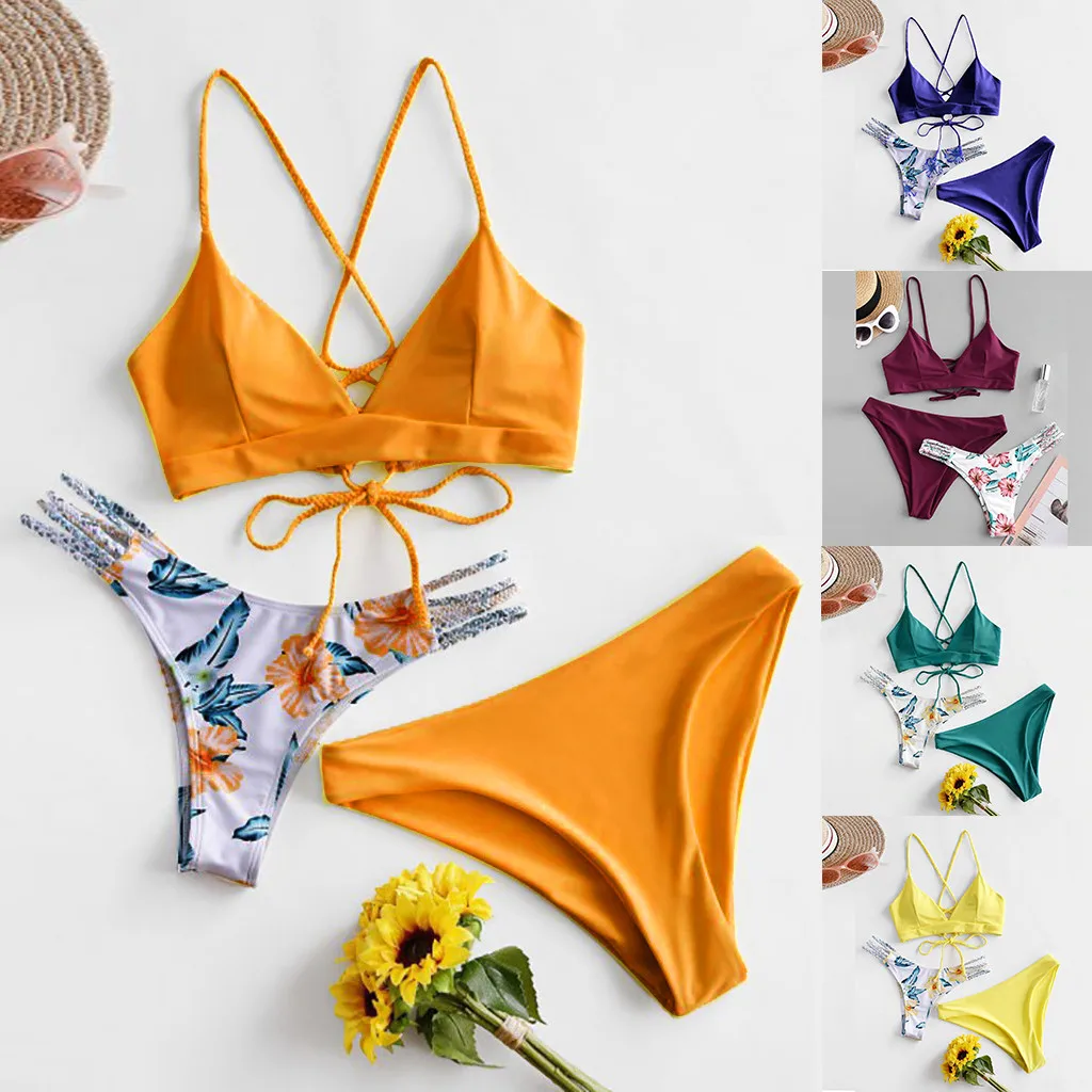 Женский комплект бикини с принтом, купальник из трех частей, бюстгальтер, купальник, пляжная одежда