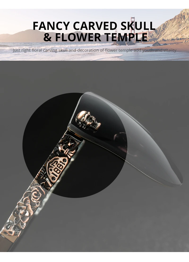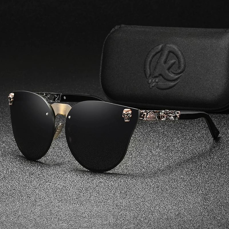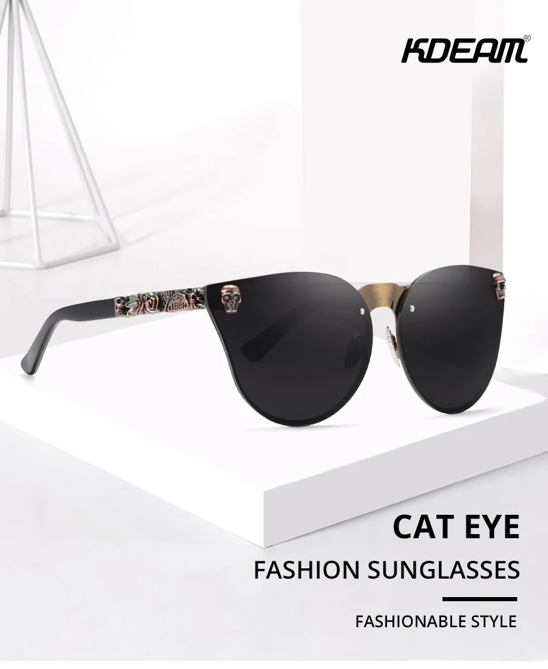 KDEAM, Ретро стиль, Череп, кошачий глаз, солнцезащитные очки, для женщин, стимпанк, качающиеся, UV400, солнцезащитные очки, для девушек, с чехлом