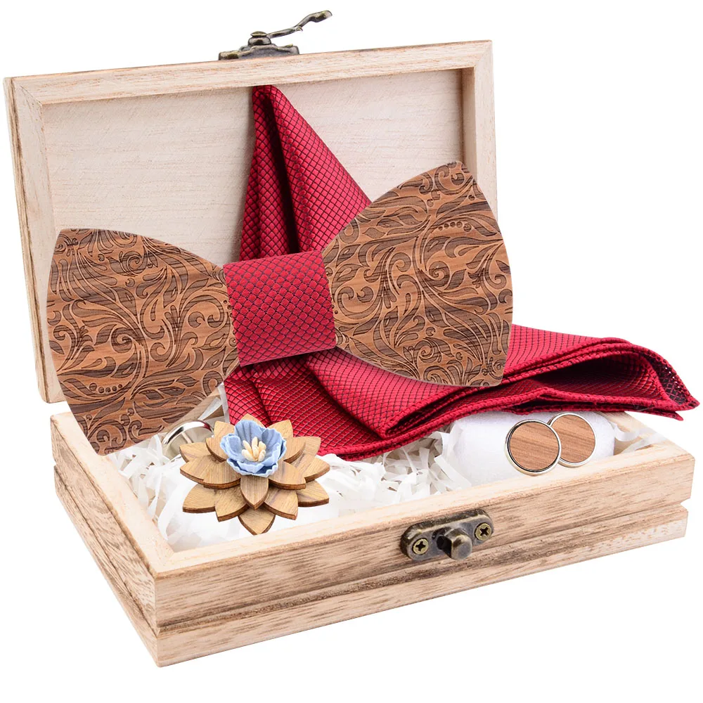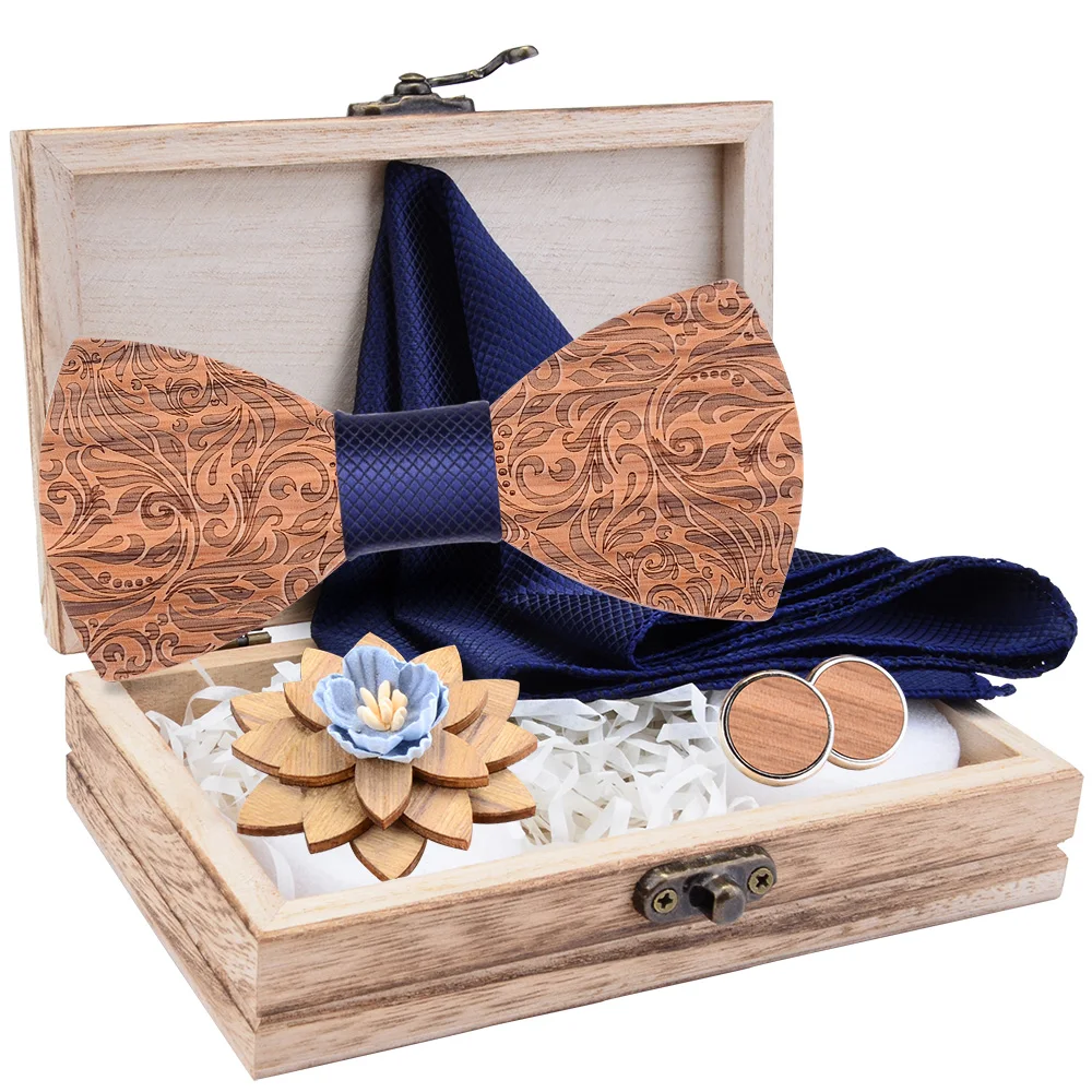 2020 регулируемый деревянный галстук-бабочка карманная квадратная брошь запонки набор для мужчин и женщин модный деревянный галстук-бабочка аксессуары для шеи галстуки коробка