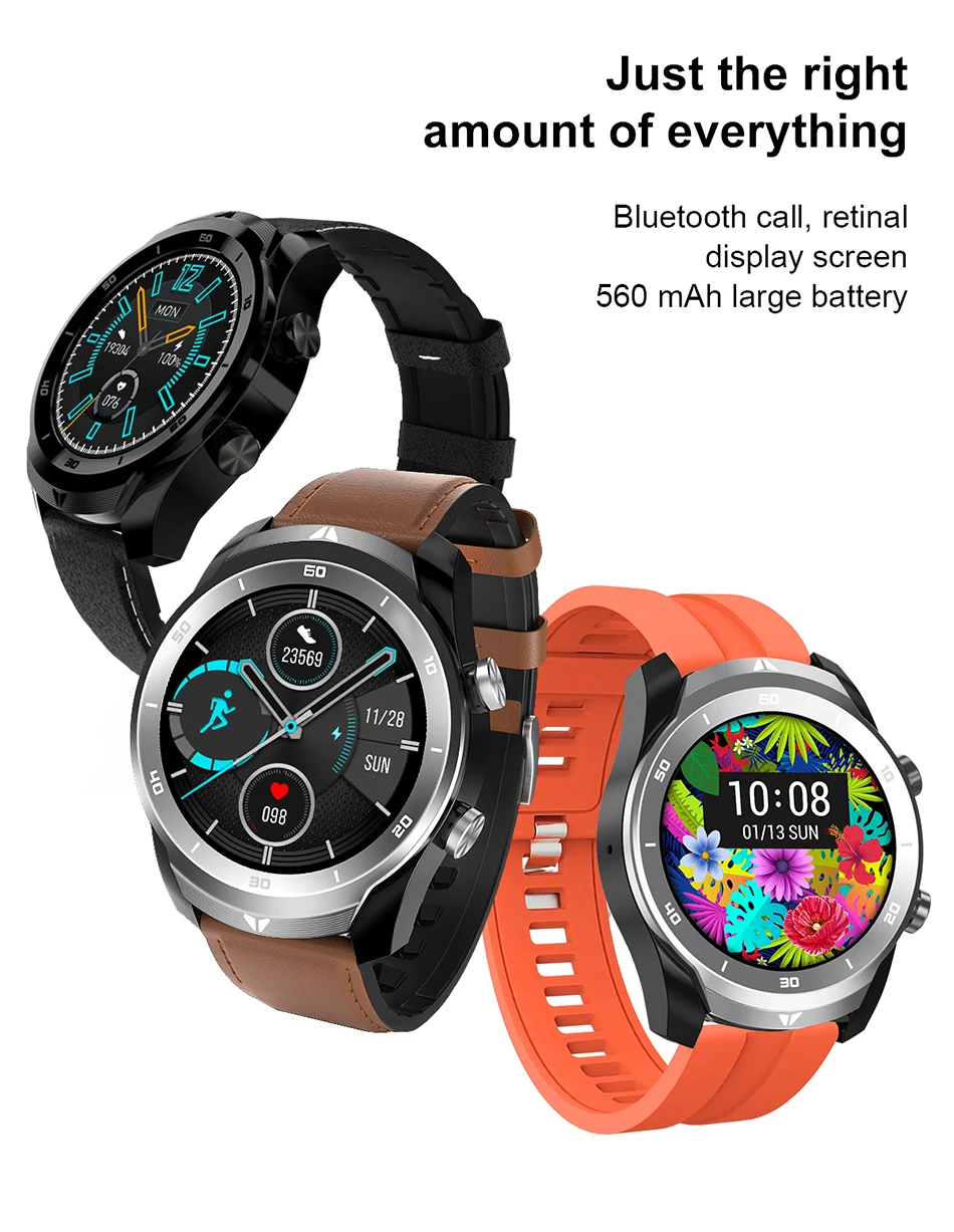(Box packaging + manual + product)Battery TypeLithium batteryBattery Model 553029Battery voltage3.7VBattery capacity560MAHLong battery life5daysCharging methodMagnetic chargeCharging timeAround 3hColor of StrapBlack leather (gift black silicone strap),Brown leather (gift orange silicone strap)。CertificationFCC ID,CE,RoHS, Battery certification, Appearance patent