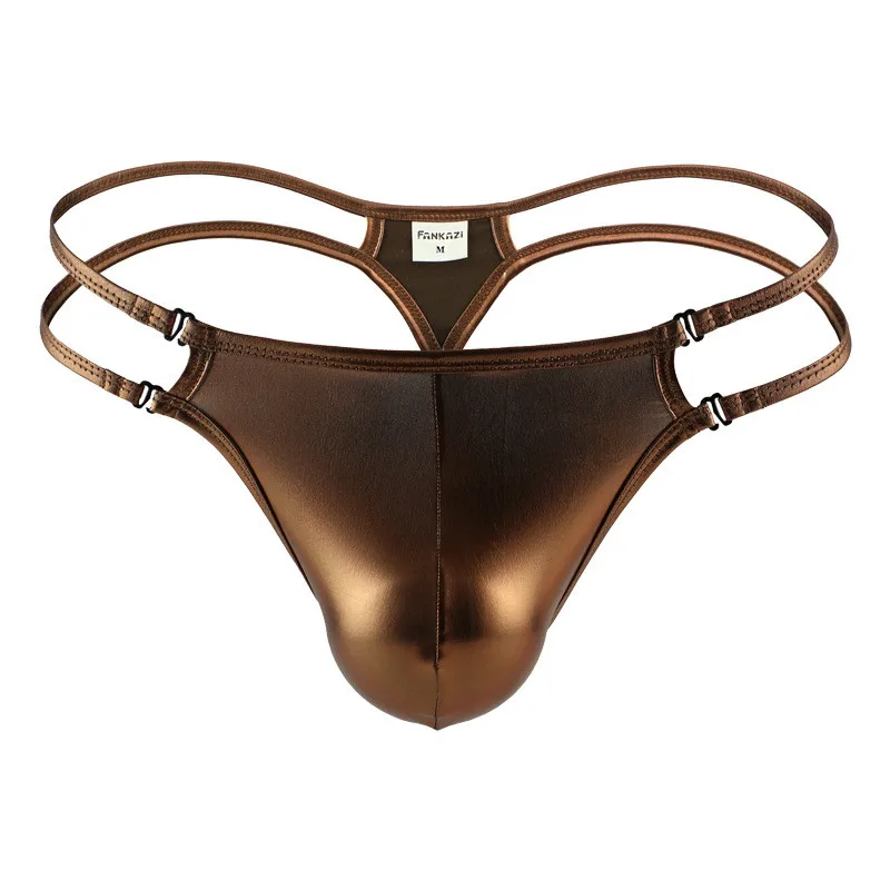 Мужское кожаное нижнее белье, бандажные трусы для геев с молнией спереди, открытое нижнее белье, трусы, сексуальные мужские трусы золотого цвета