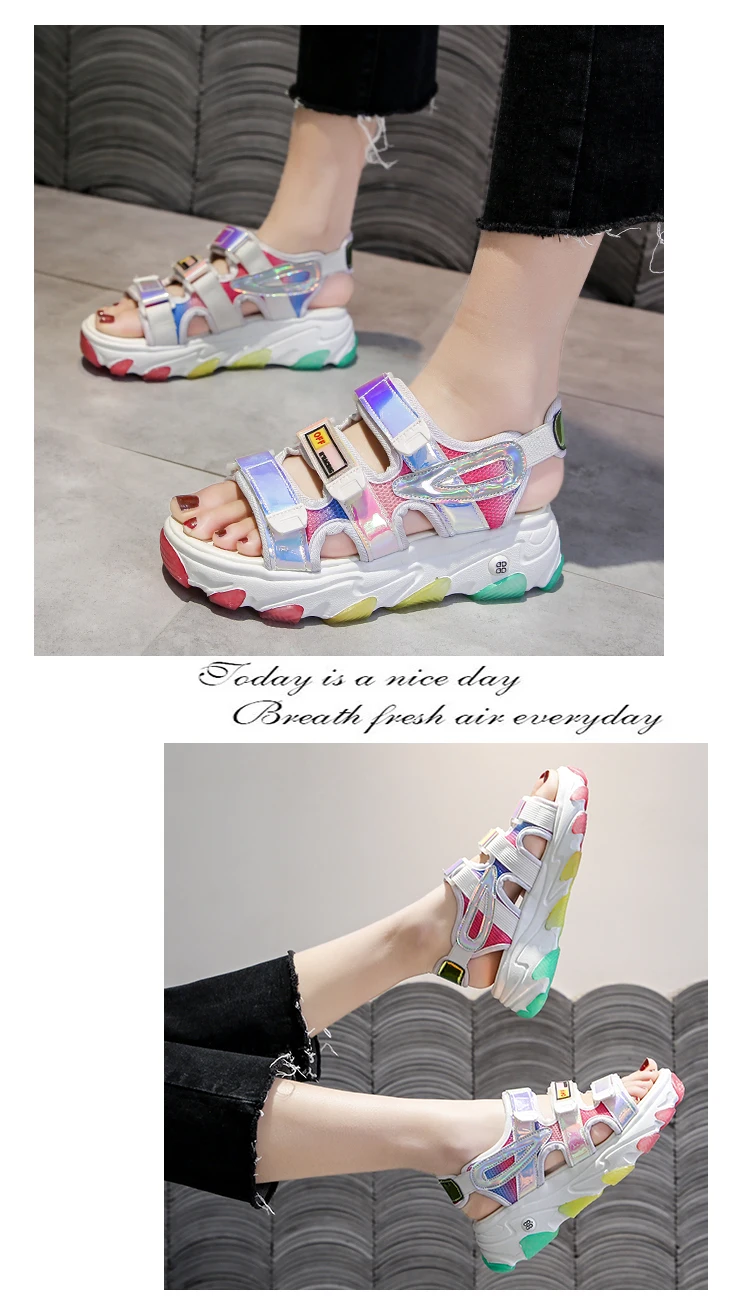 Летние модные босоножки на платформе; Женские сандалии на резиновой подошве; Женские сандалии; Повседневная обувь на плоской подошве; Sandalias Mujer; 2020 Sandale Femme