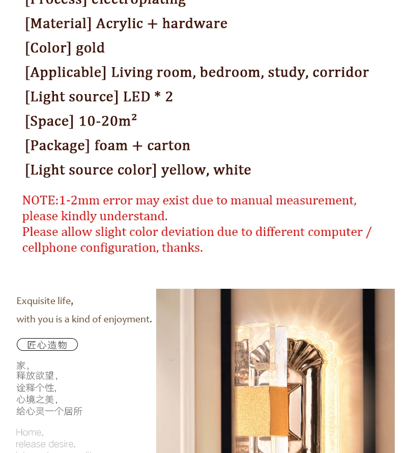 Товар: Хрустальный акриловый светодиодный настенный светильник