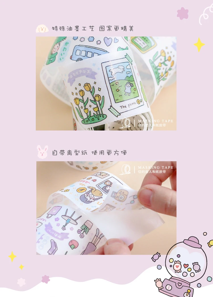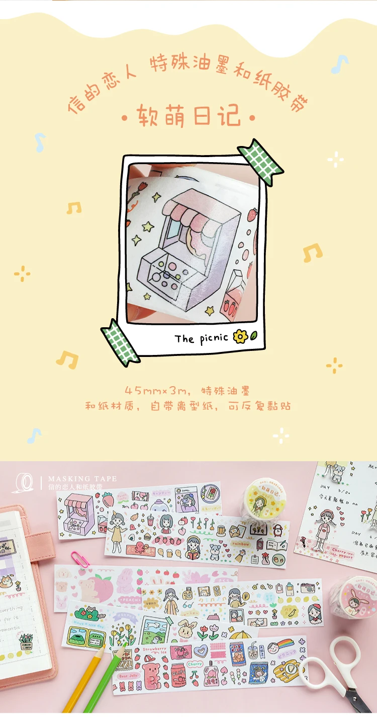 Kawaii DIY Милая Повседневная жизнь маленькая серия стикеров Васи маскирующая Лента наклейки Скрапбукинг Канцтовары декоративная Длинная лента