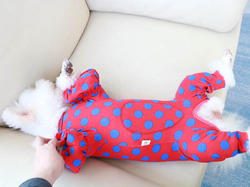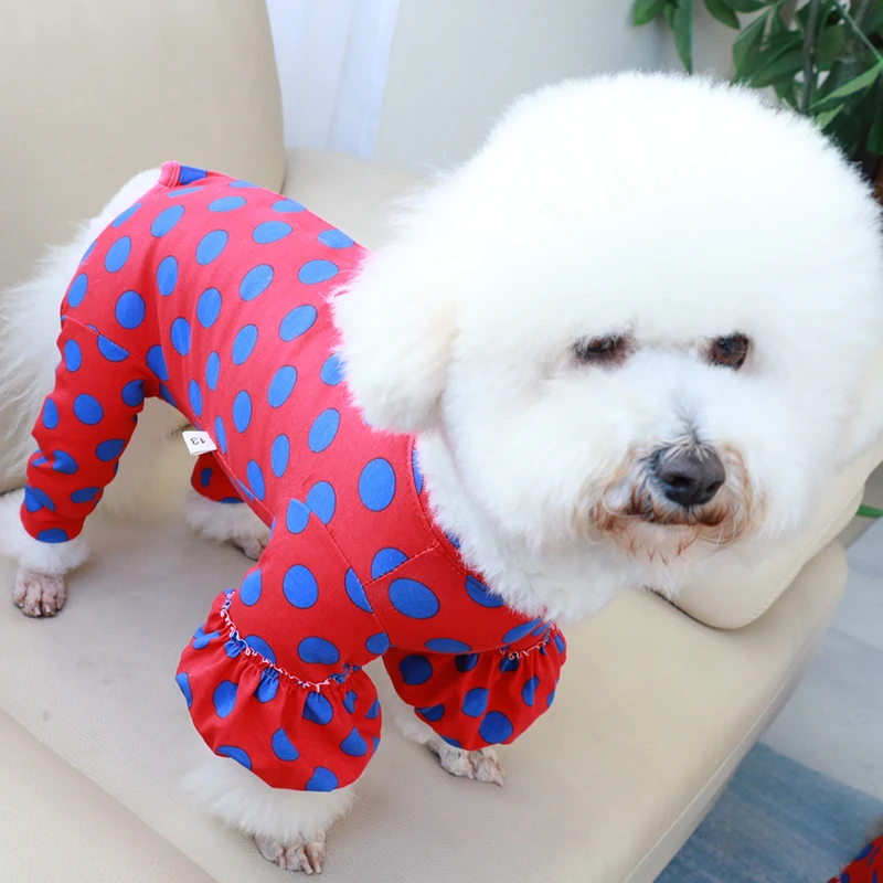 Комбинезон для собаки тонкая 100% хлопковая одежда для щенков красная комбинезон в горох Пижама для защиты живота для маленького свитер для собаки пуделя чихуахуа