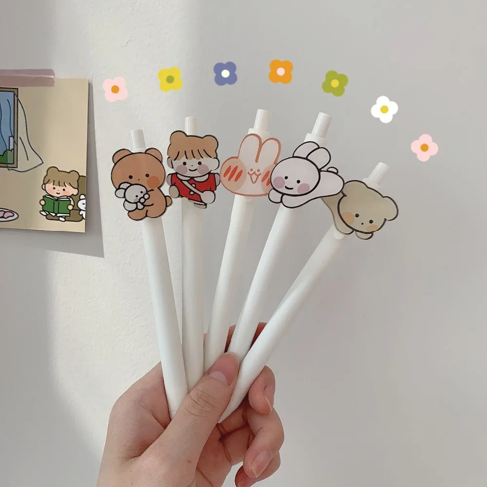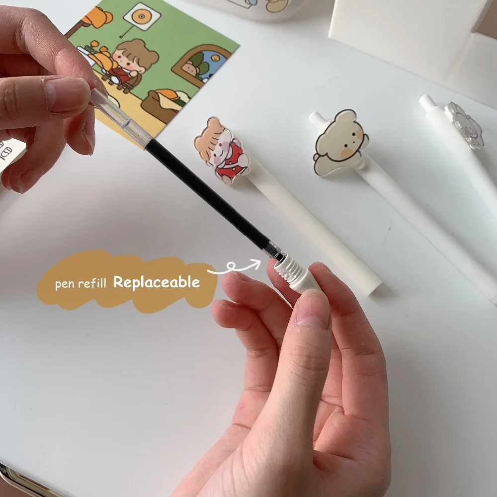 Sharkbang 1PC 0.5mm Kawaii Bear Black Ink Gel Pen Press Type Writing Pen Ball Pen Kids Gift School Office Stationery Accessories