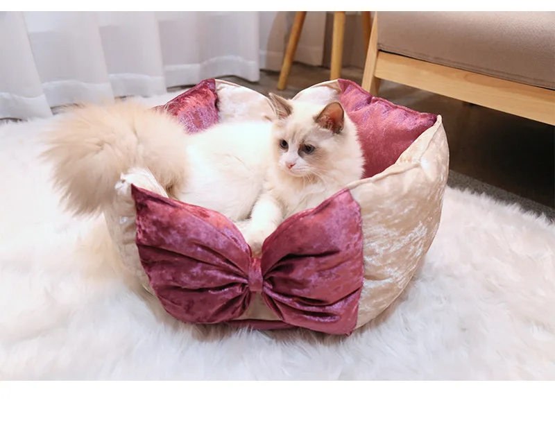 Элегантный Бант, кровать для собаки принцессы, милый кот, гнездо, круглая кровать для кошки, коврик для щенка, кровати для маленькой собачки, дом, теплая корзина для питомца, плюшевый диван