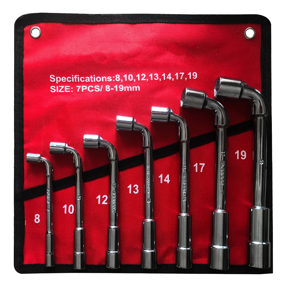 Description: Type: Smooth Type 7pcs Size:8,10,12,13,14,17,19(mm) 12pcs Size:8,9,10,11,12,13,14,15,16,17,18,19(mm) Feature: 1.Chrome Vanadium Steel 2.Pressure and Erosion Resistant 3.Suitable for Long Time Industrial Usage 4.Anti Corrosion/Slip Surface 5.Flexible rotation, mainly used in auto repair machine repair. Package Including: 7pcs=7pcs L type socket Wrench Combination+1 pcs Wrench Storage Bag 12pcs=12pcs L type socket Wrench Combination+1 pcs Wrench Storage Bag