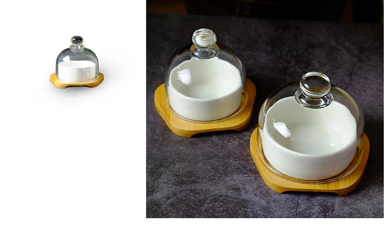 Новая керамическая десертная миска для перекуса блюдо Вкус фруктовый салат миска для мороженого чашка для пудинга с бамбуковым поддоном стеклянная крышка креативная посуда