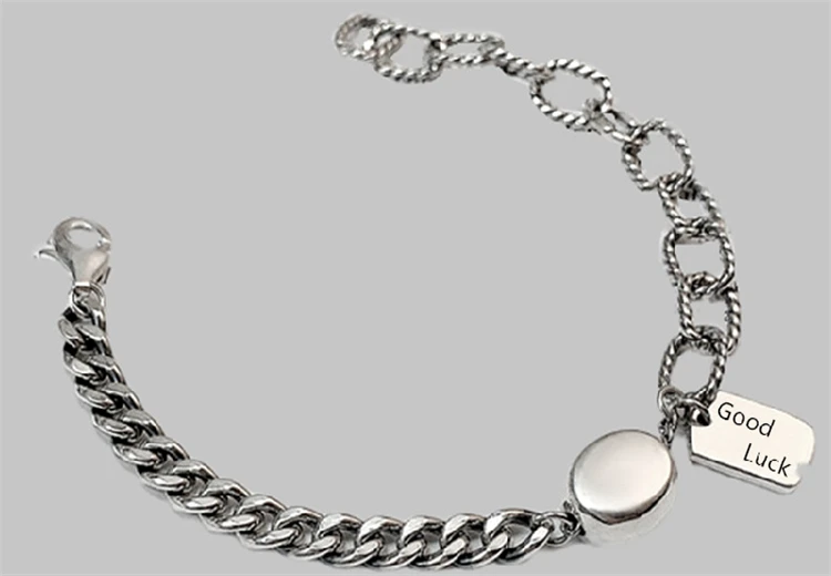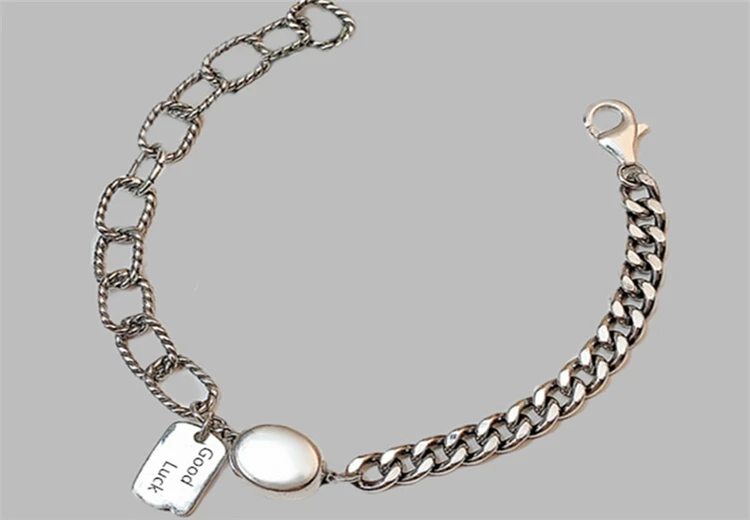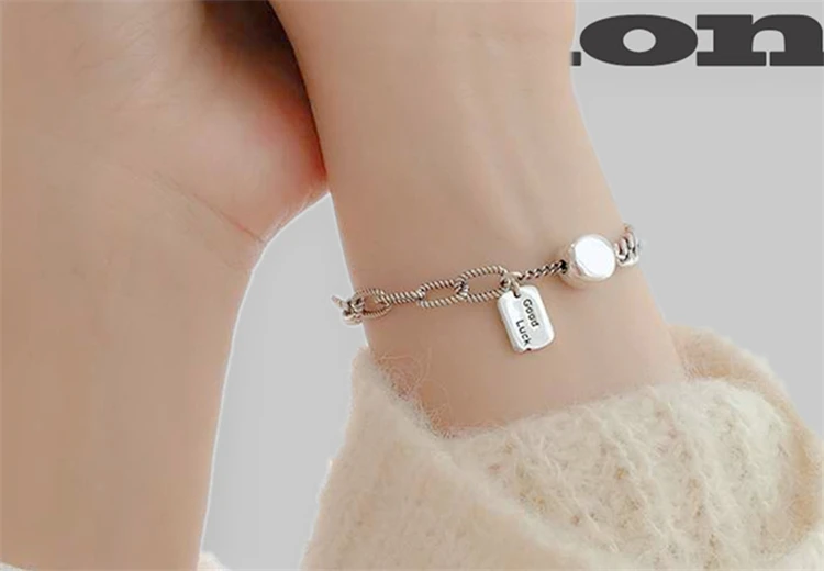 Женские браслеты в стиле панк-рок с большой цепочкой хиппи, браслеты на запястье с надписью «удачи 925 пробы», серебряные браслеты в стиле бохо для уличных девушек