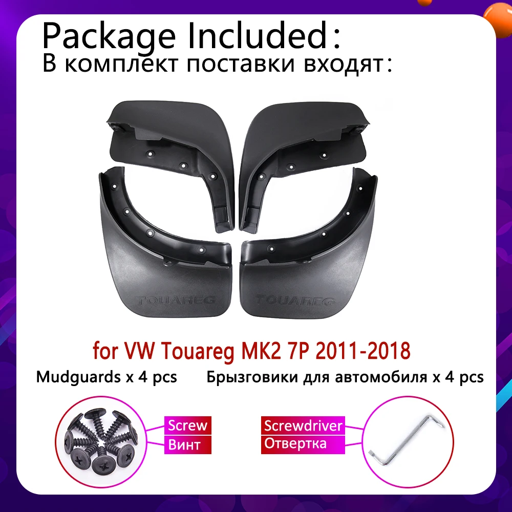 4 предмета в комплекте, для Фольксваген Touareg MK2 7P 2011 2012 2013 2014 2015 2016 2017 2018 брызговики