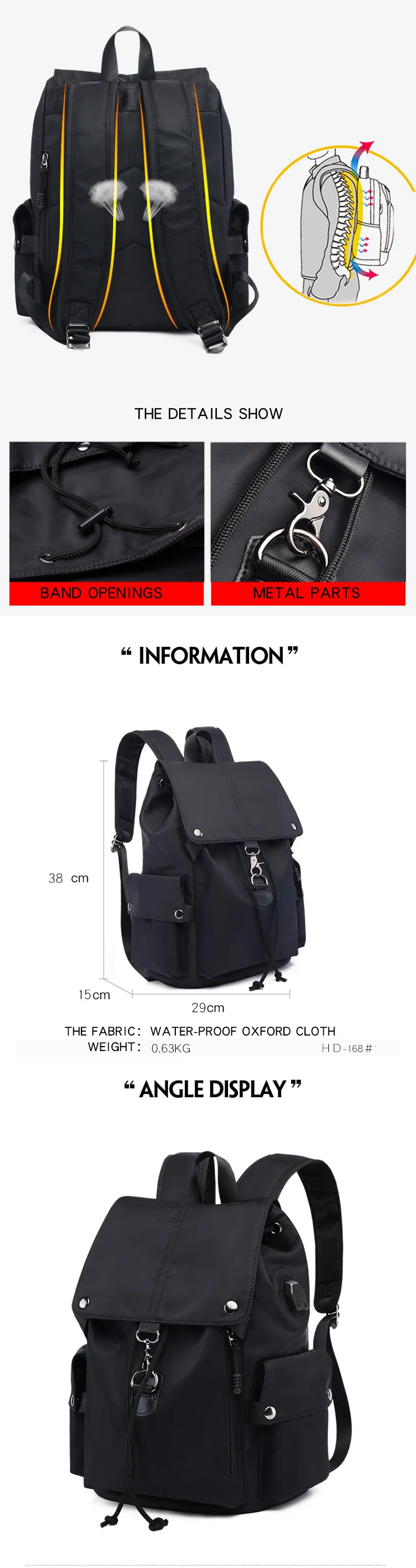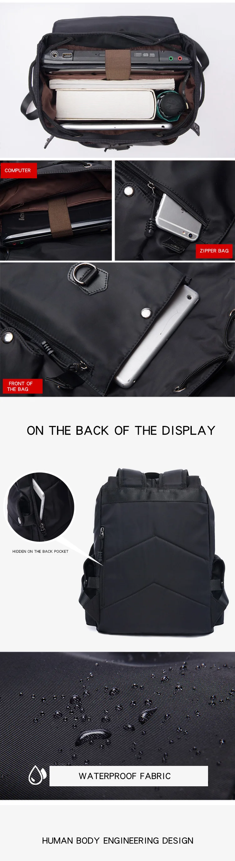 1. Водостойкий материал2. Большое пространство и мульти-карман3. Регулировочная застежка Textture4. Устойчивый к царапинам материал5. С USB зарядкой