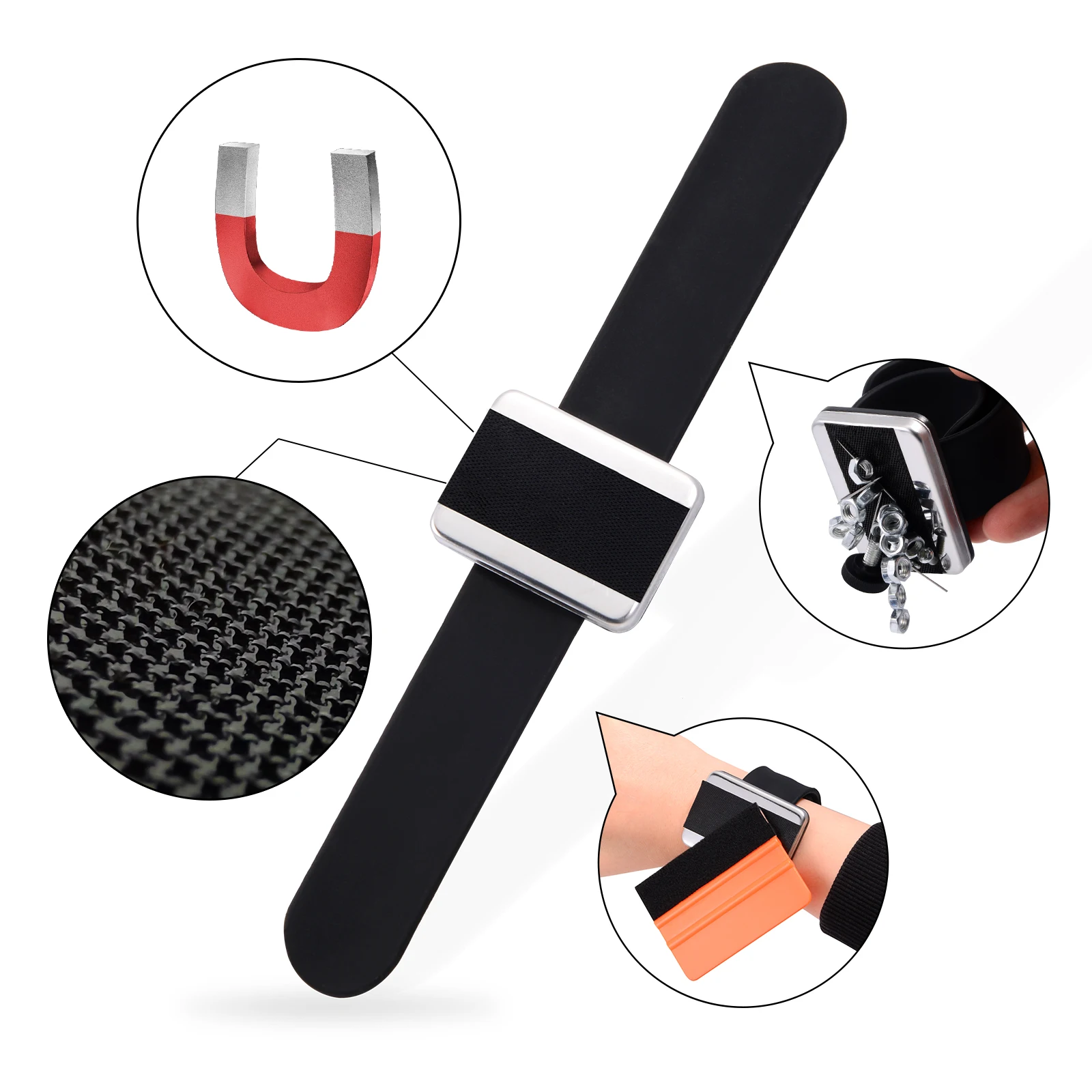 Название: магнитный браслет с ремешком для автомобиля Материал: ткань Оксфорд, полностью нейлоновая липучка, магнит, резина, сплав Размеры: 10 см/3,94 дюймов Посылка включает в себя: 1 Магнитный браслет (инструменты для отображения не включены) Особенности: 1. Магнитный дизайн --- встроен в супер сильные магниты, он способен удерживать на нем больше необходимых предметов: винты, болты, биты, гвозди, дрель и другие магнитные мелкие инструменты. Не упадут, если вы их не снимите. И гарантируем более высокую эффективность. 2. На металлическом блоке есть полиэфирный войлок, обертка может прикрепить войлочный край к положению полиэфирной ткани. 3. Один размер подходит для большинства --- магнитный браслет может быть отрегулирован для любого запястья, унисекс дизайн, который подойдет как мужчинам, так и женщинам. 4. Если вам поручили обмотку автомобиля, тонирование окон, самостоятельная работа по улучшению дома или простое исправление-проект вокруг дома, это отличная третья рука помощи, которая дополняет ваш трудолюбивый стиль.