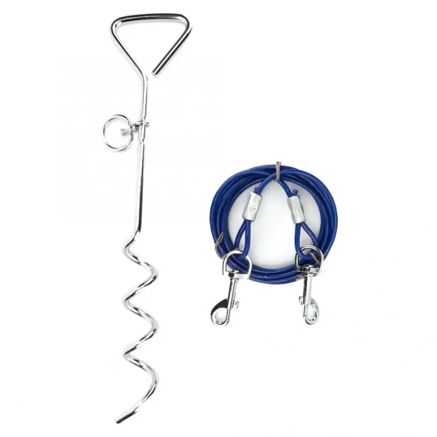 Наружный поводок для собак спиральный заземляющий столб двойной крюк стальная проволочная Тяговая цепь