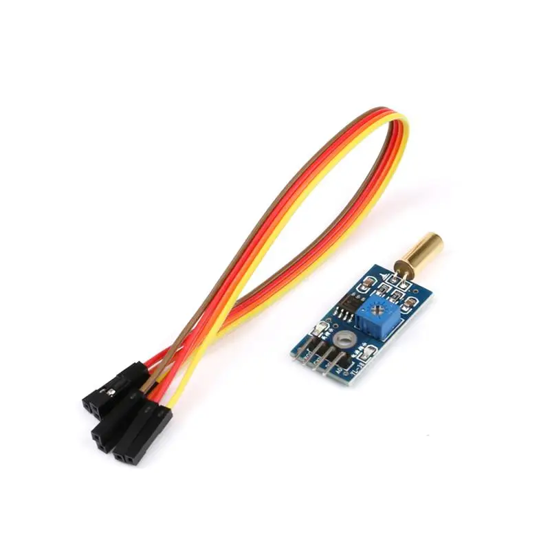 Этот модуль обычно используется для определения интенсивности вибрации. Когда интенсивность вибрации не может достичь значения, выход высокий уровень. Когда интенсивность вибрации выше значения, модуль делает вывод на низком уровне. Цифровой выход модуля может быть непосредственно подключен к микроконтроллеру, используйте микроконтроллер для обнаружения высокого или низкого уровня, чтобы определить вибрацию.1. Может проверить вибрацию окружающей среды2. С датчиком SW18010P3. Точность регулируется4. Рабочее напряжение 3,3 V-5V5. Выход: выход цифрового переключателя s (0 и 1)6. С винтовым отверстием7. Размер печатной платы: 3 см * 1,6 смОписание интерфейса (3 провода)1. VCC -- 3,3 V-напряжение постоянного тока 5V (можно подключать напрямую с помощью 3,3 V или 5V микроконтроллер)2. GND -- GND3. DO-board цифровой выходной интерфейс (0 и 1)
