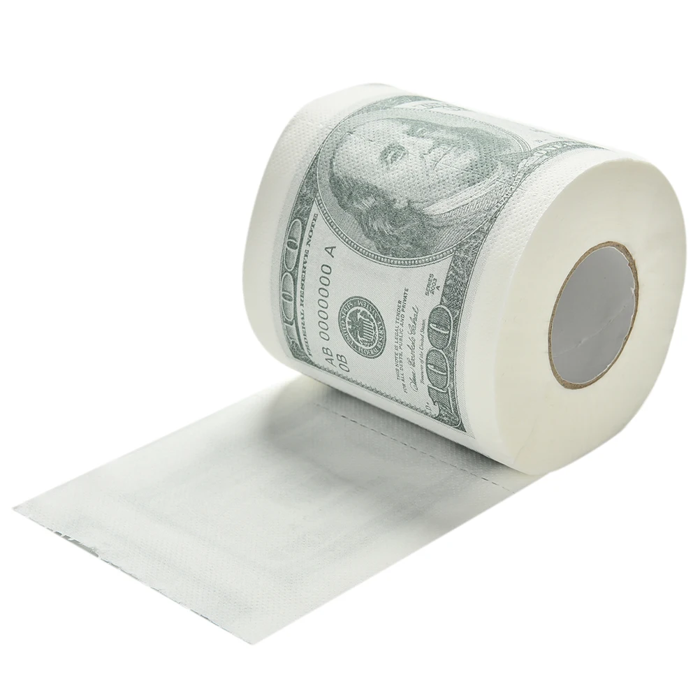 Туалетная бумага с принтом выглядит как 100 долларовый бумажник для дополнительного поглощения 1,5x больше обычного размера долларовые бумажники 100% текстура чистой древесной целлюлозы