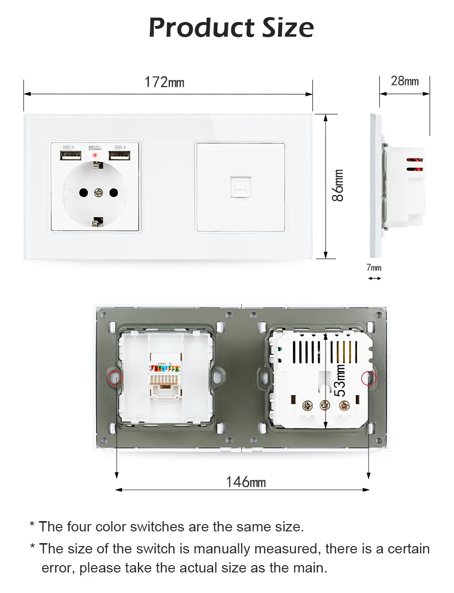 1. 100% новая и высококачественная настенная панель. 2. Этот продукт должен устанавливаться профессиональным электриком. 3. Он универсально используется во многих местах, таких как отели, рестораны, дома, общественные места.