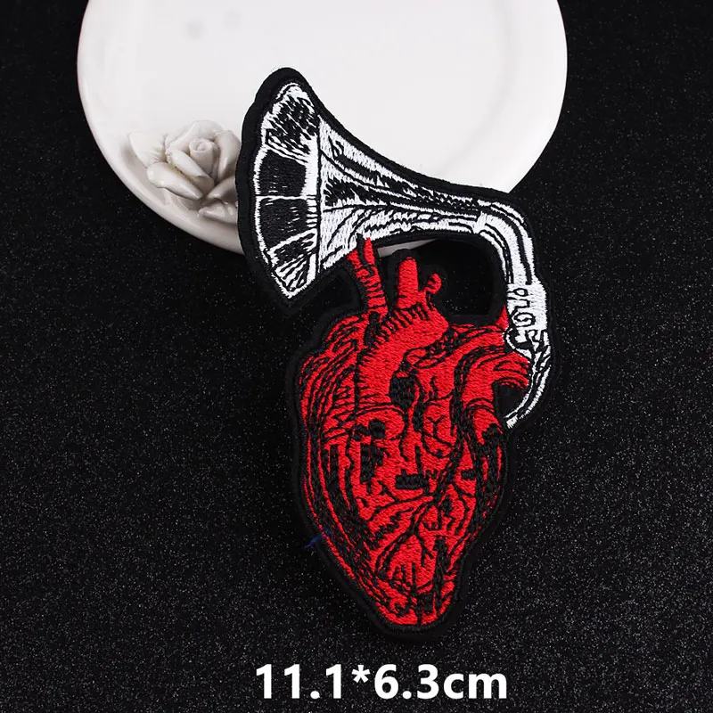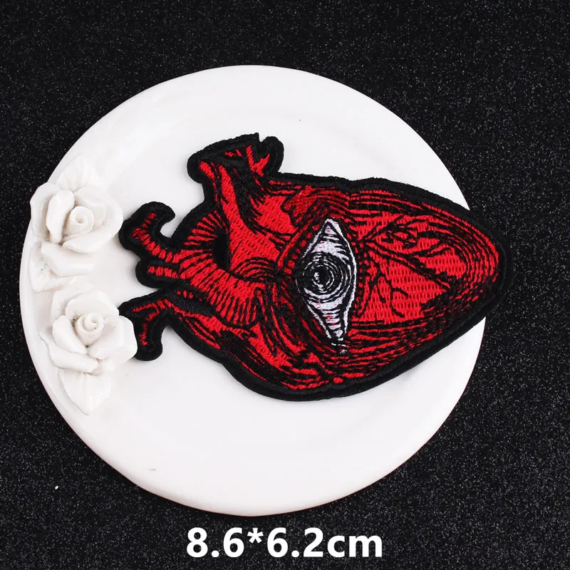 Red Heart Patch Iron On Patch Punk Patches Embroidered Applique Patches For Clothing Cool Stickers For Clothes Stripe Badge Accessory