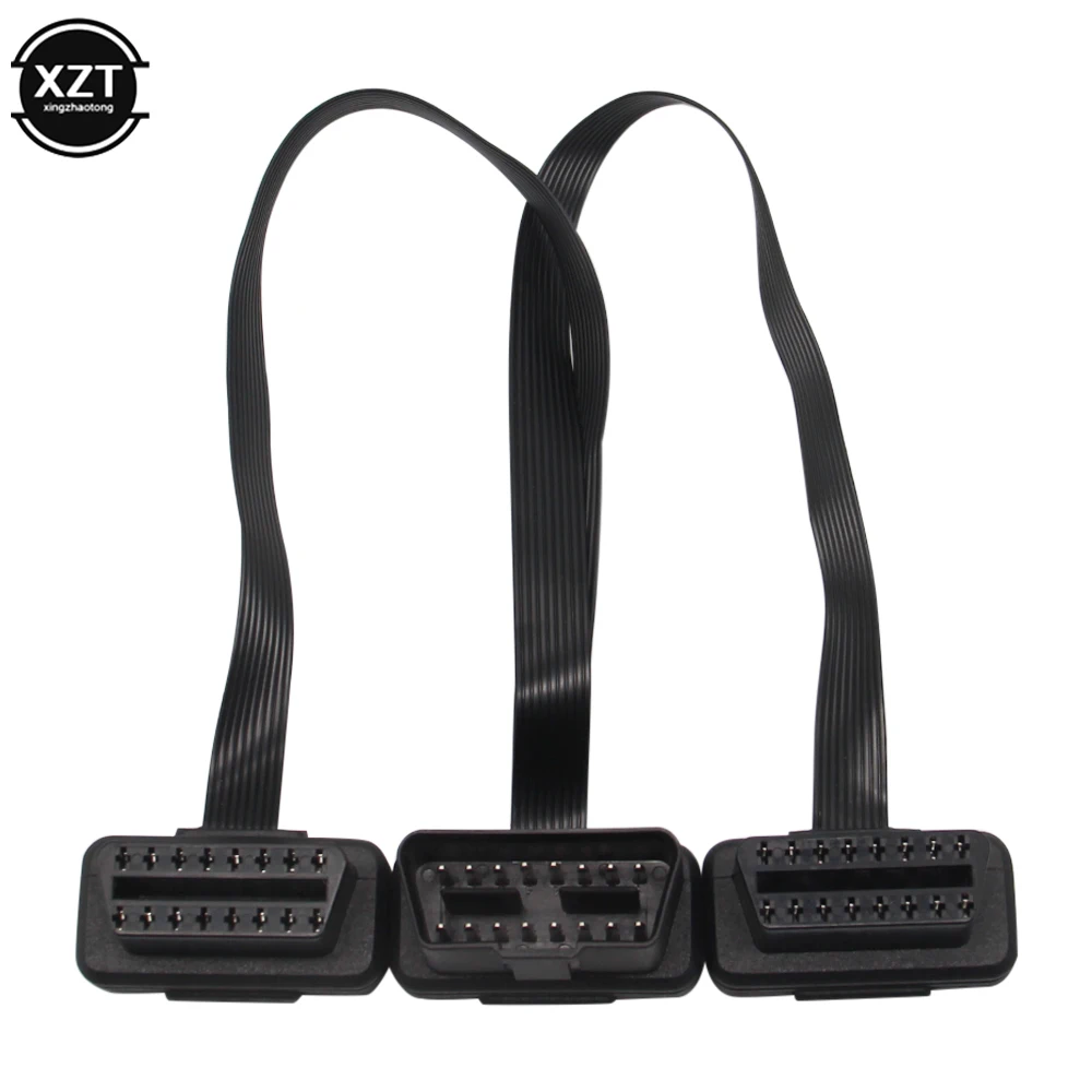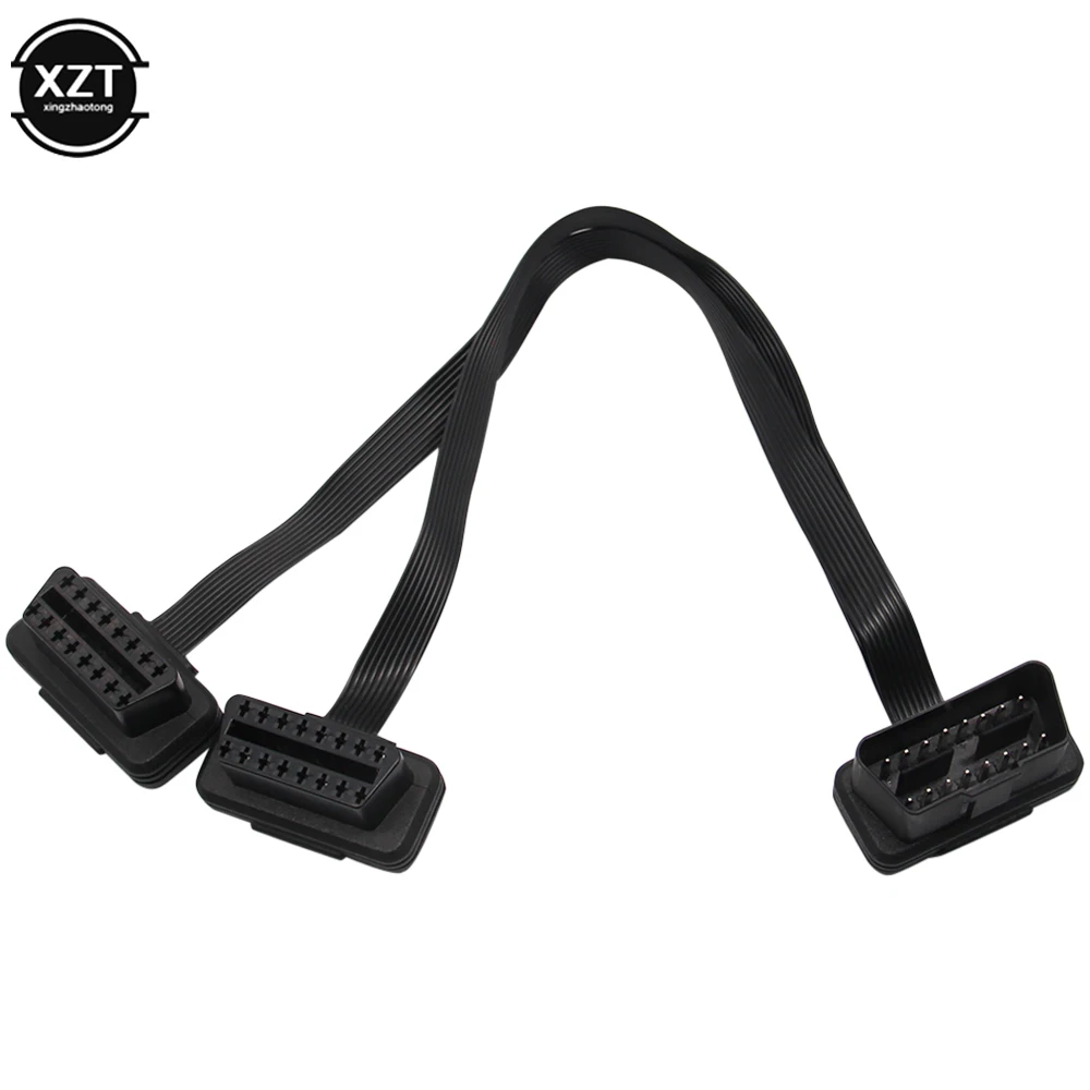 Плоский + тонкий 16 Pin OBD 2 удлинитель OBD2 16 Pin ELM327 Штекерный к двойному гнезду Y сплиттер локоть OBDII удлинитель соединительный кабель