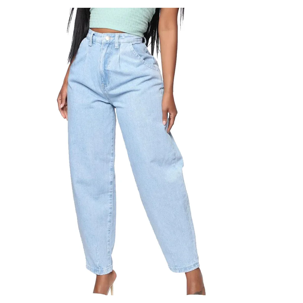 Модные женские повседневные джинсы с карманами и высокой талией, джинсовые шаровары, брюки