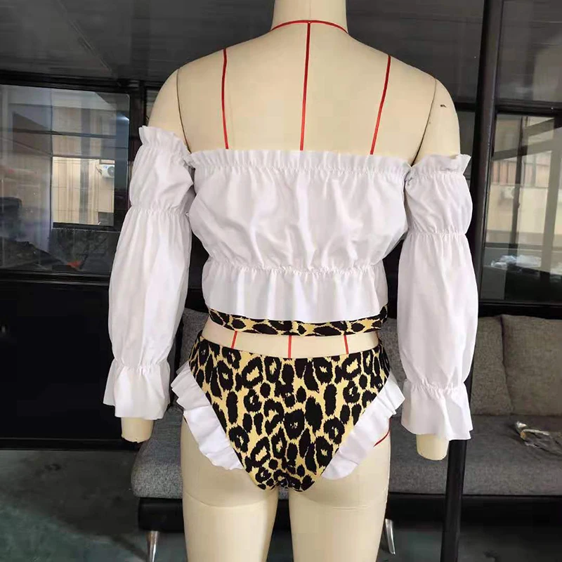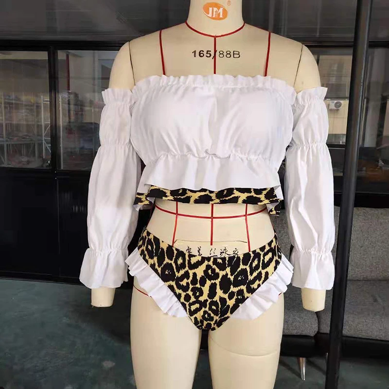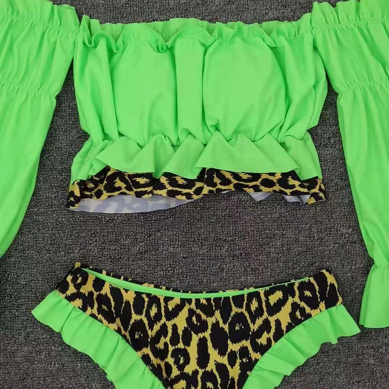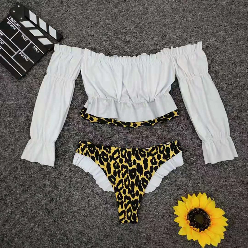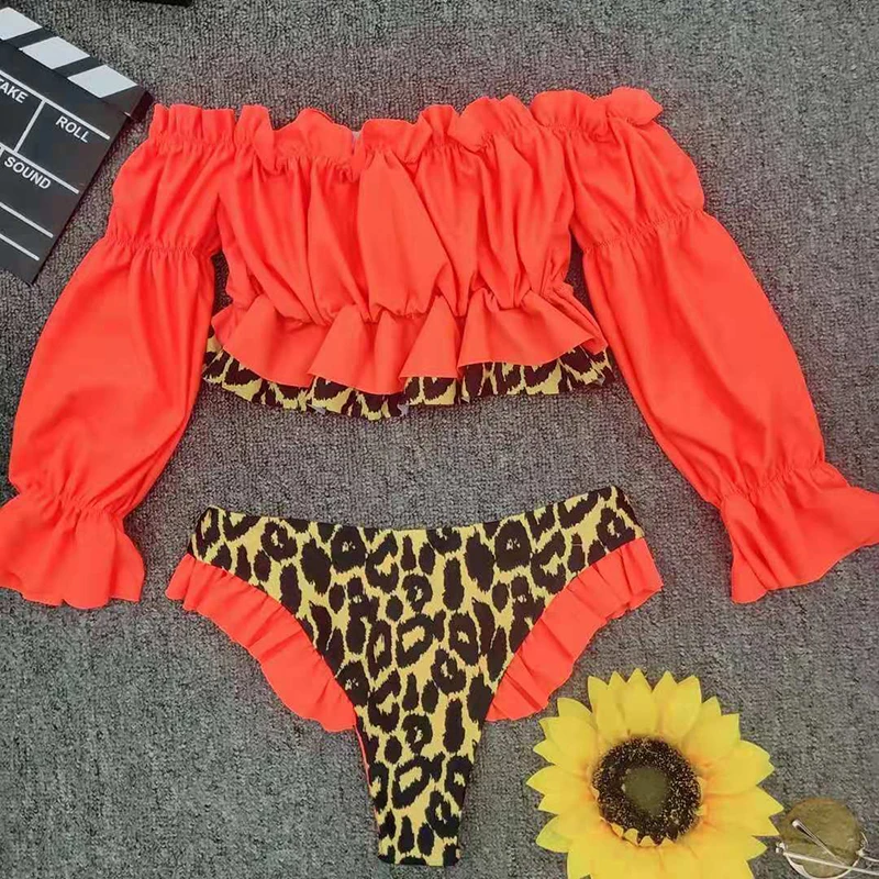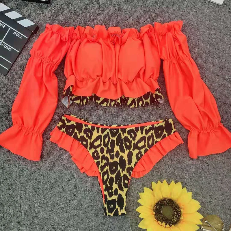 Женский купальник с оборками, бикини с длинным рукавом, комплект бикини 2020, пуш-ап, Леопардовый купальник, женский купальный костюм