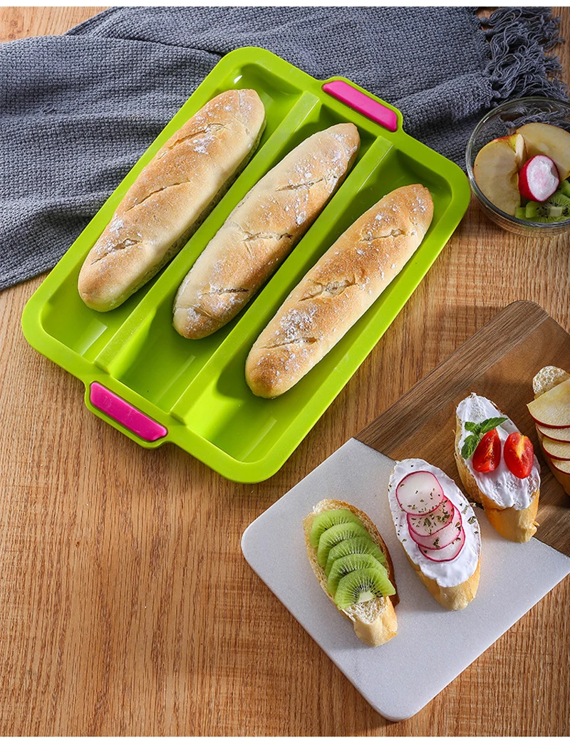 Силиконовая 3 слота антипригарная выпечка, багет-поднос, форма для выпечки французского хлеба, кухонная форма для выпечки