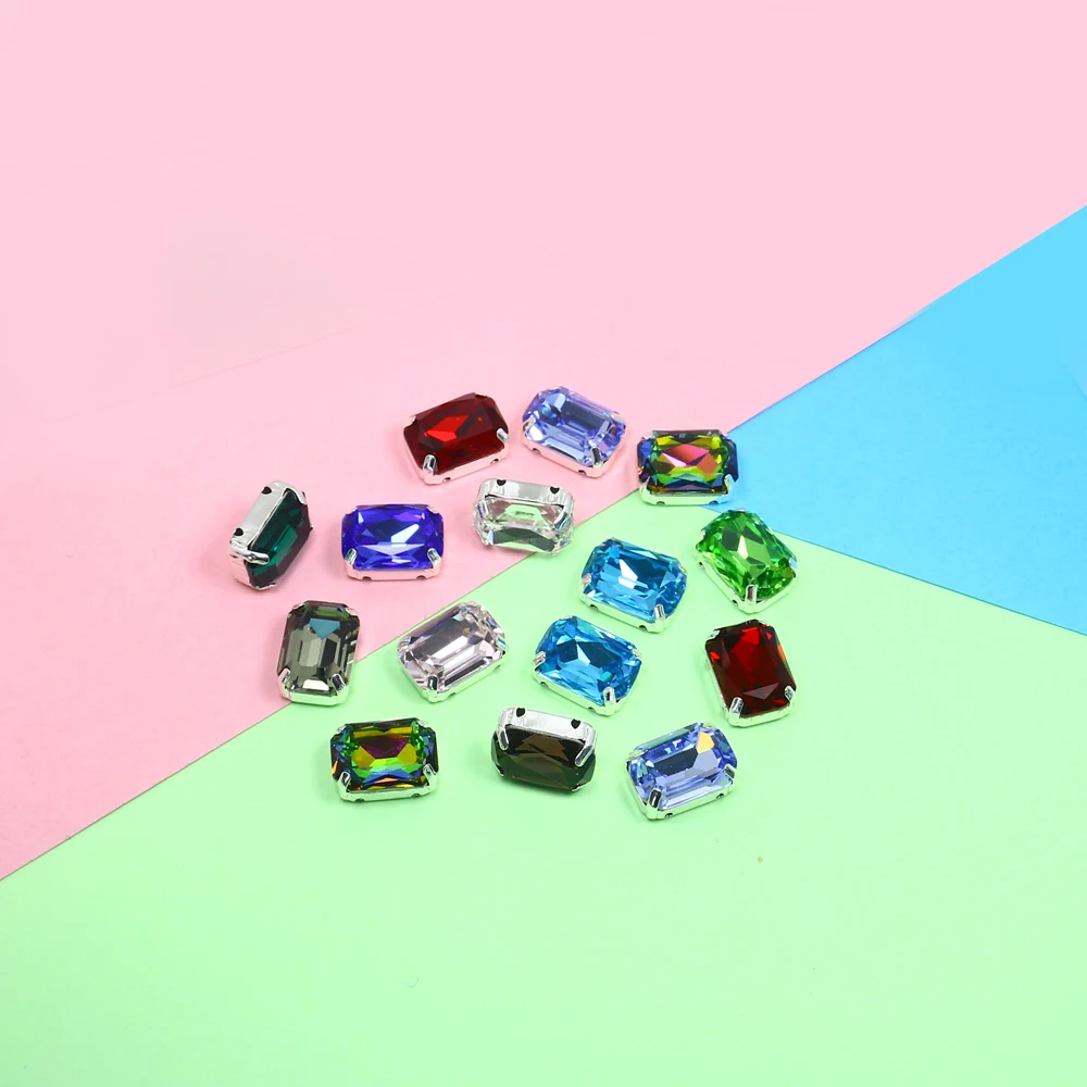 Прямоугольное восьмиугольное стекло с кристаллами с когтями, шитые Стразы, расшитые бисером, стразы со стразами для одежды, платье для рукоделия