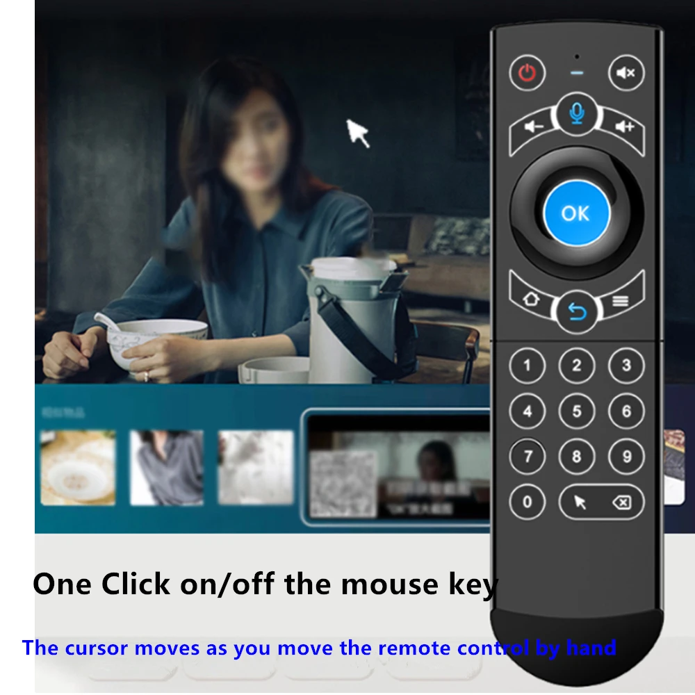 Особенности: 1. 2,4G голосовое дистанционное управление; 2. 16 кГц микрофон и голосовой вход; 3. 6-axis (3-осевым гироскопом + 3-осевой акселерометр) Воздушная мышь; 4. 1: 1 соматосенсорный захват; 5. 1: 1 опыт пользователя; 6. Инфракрасная и беспроводная передача. Технические характеристики: Воздушная мышь Скорость передачи: 250 кбит/с Рабочая частота: 2400,0 МГц-2483,5 МГц Выходная мощность: -18 дБм ~ 0 дБм Функция: голосовой пульт дистанционного управления 2,4 Размер: 155*43*15 мм/6,10*1,69*0,59" Источник питания: 2 батарейки AAA (не входят в комплект) Usb-приемник Скорость передачи: 250 кбит/с Рабочая частота: 2400,0 МГц-2483,5 МГц Выходная мощность: -18 дБм ~ 0 дБм Функция: HID совместимое устройство, USB Аудио Микрофон устройство Инструкция: 1. Режим работы При нормальных условиях работы энергопотребление не превышает 50 мА. 2. Режим сна После 20 секунд бездействия он автоматически переходит в режим ожидания, а потребляемая мощность составляет менее 25 μA. Теперь нажмите любую клавишу еще раз, чтобы разбудить пульт дистанционного управления.