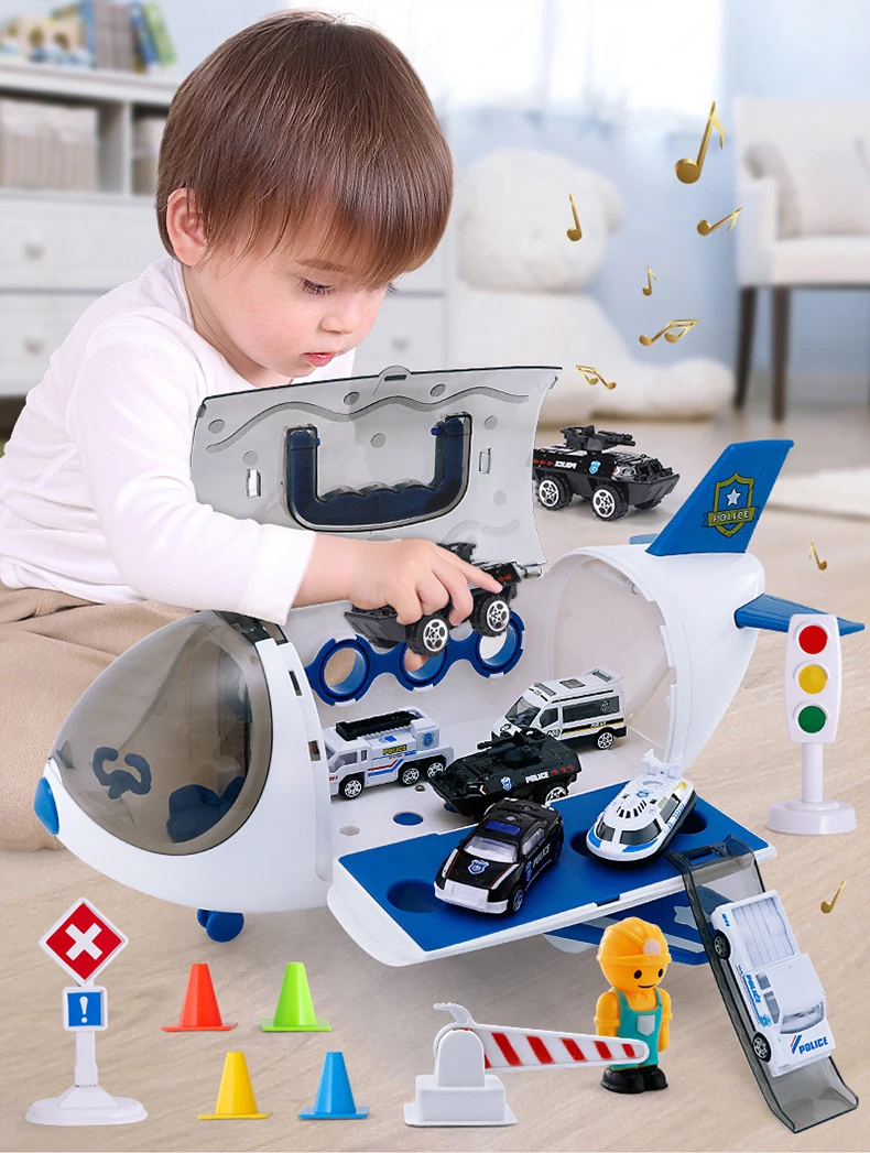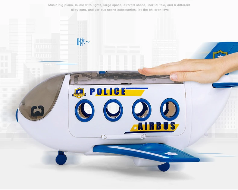 Дверь самолета может быть открыта и загружена несколькими машинными игрушками.