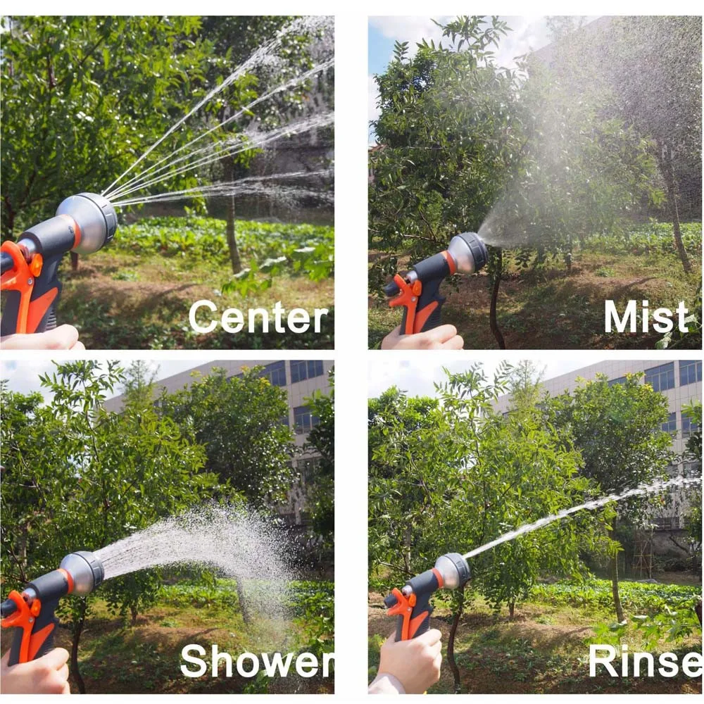 8 Полива узорами. Сопло шланга имеет 8 режимов полива воды: конус, струя, Туман, центр, душ, краску, плоский, чайник. Поверните распылительное сопло набрать Выберите подходящий Рисунок с помощью зеленого крана на ручке.