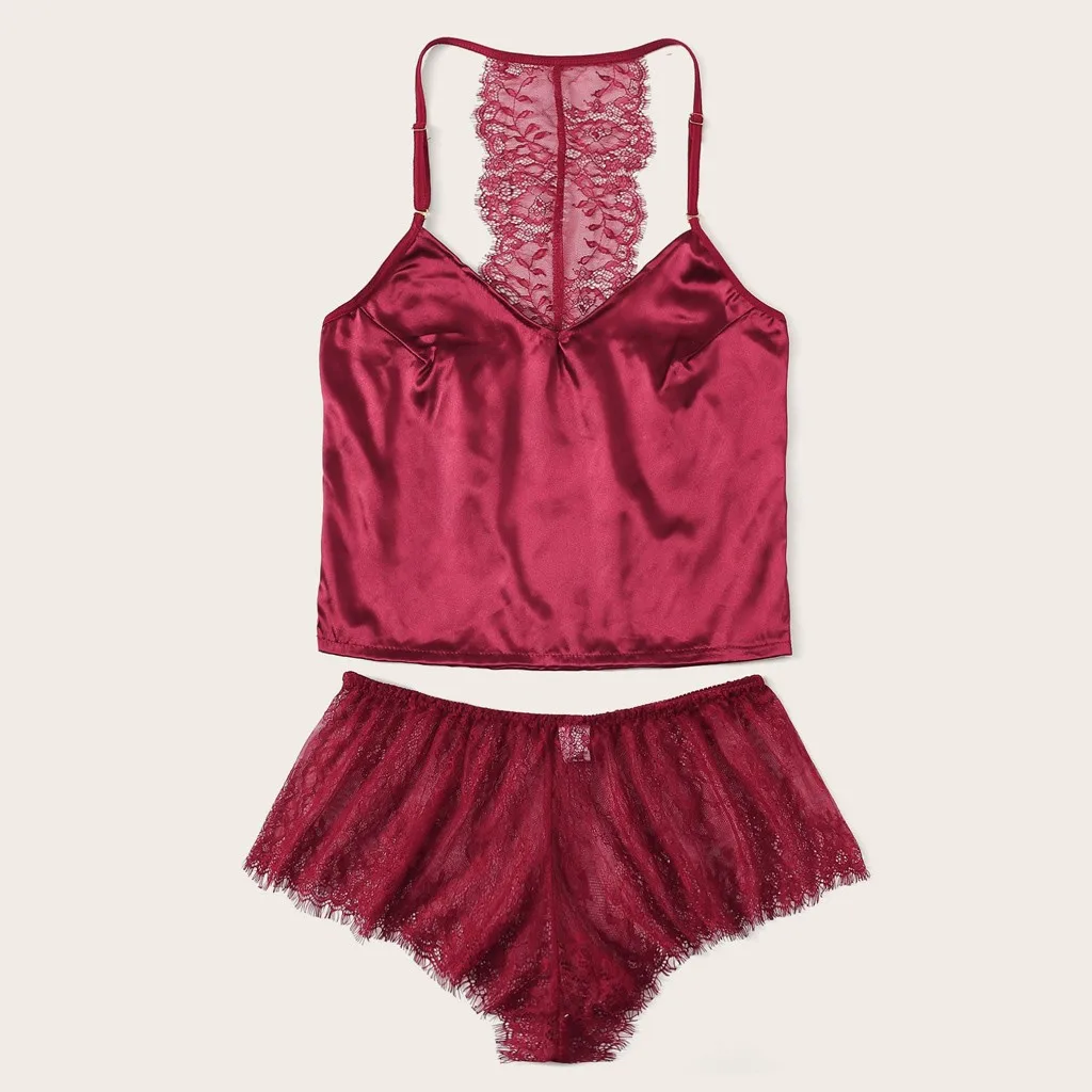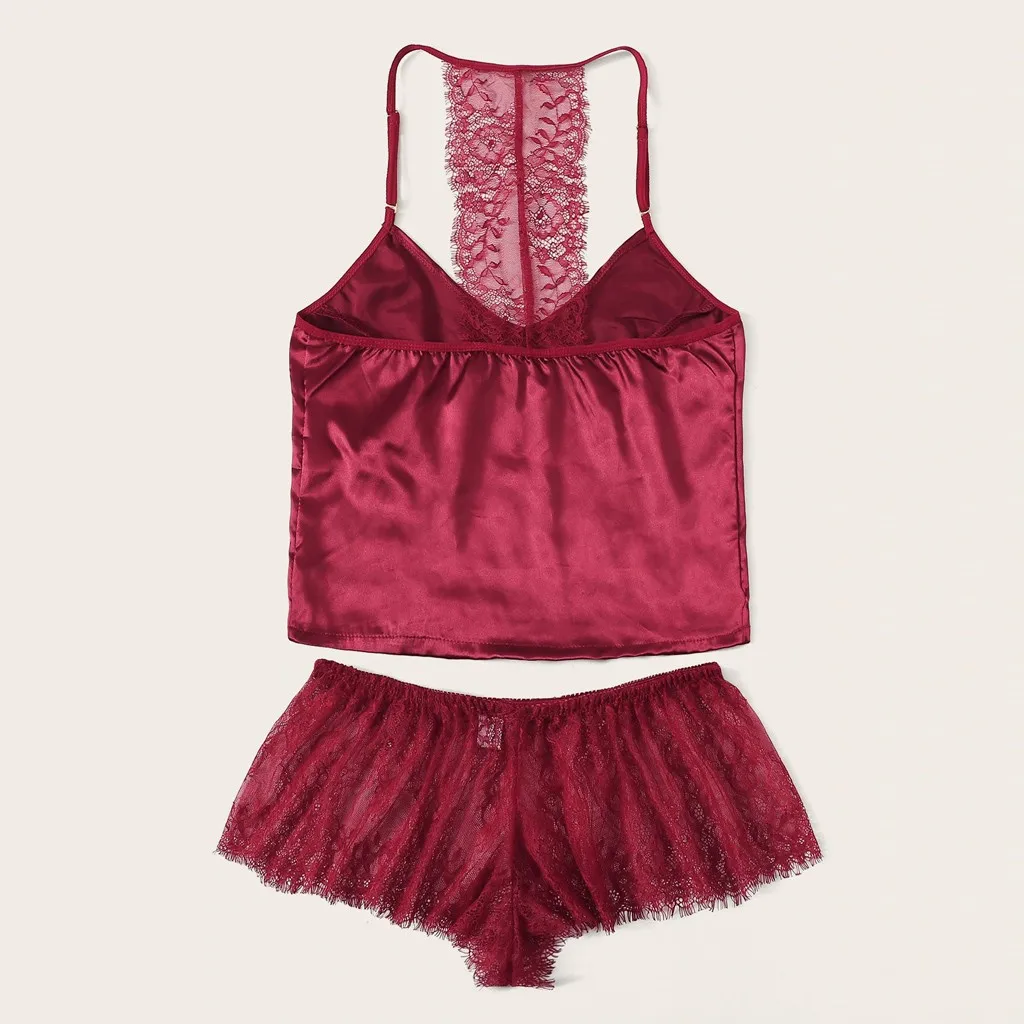 Женская кружевная майка с цветочным принтом, шорты с открытой спиной, пижама, ночное белье