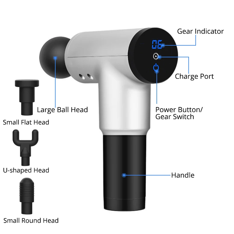 1 * Muscle Massager,4 * Replaceable Massage Head,1 * Charger,1 * Instruction Manual