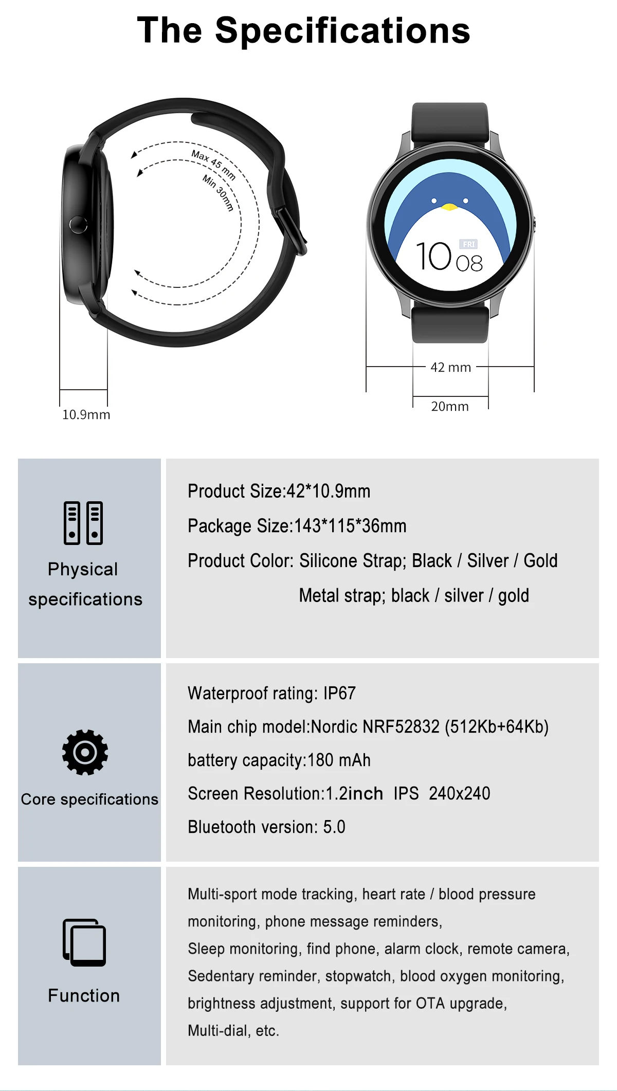 Первый в отрасли оснащен 1,2-дюймовый HD сенсорный экран, независимо от того, это информация, звонки, циферблаты или данными о состоянии здоровья во время, статус отображается в любое удобное для Вас время.