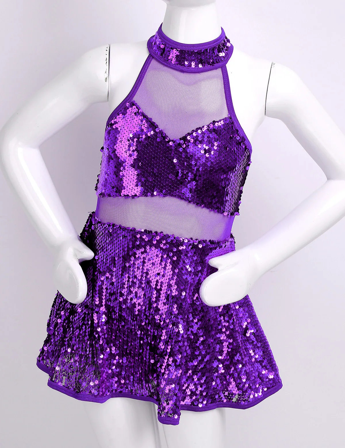 1 многослойная юбка с высокой талией и блестками, прилегающая к талии. С подкладкой для удобного ношения. Модная и стильная Одежда для танцев для вашей девочки.