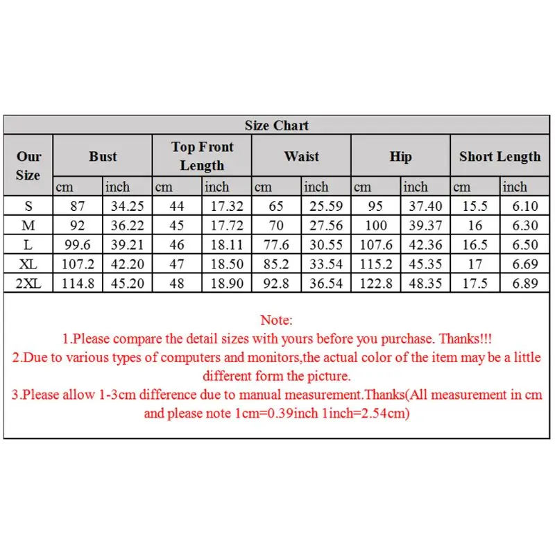 Размер: 2XL Обхват груди: 114,8 см (45,19 дюйма) длина верха спереди: 48 см (18,89 дюйма) обхват талии: 92,8 см (36,53 дюйма) обхват бедер: 122,8 см (48,34 дюйма) Короткая длина: 17,5 см (6,88 дюймов)