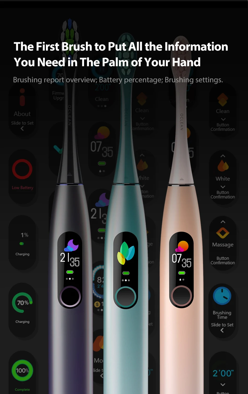 Built-in 6-axis gyroscope detects brushing motion and generates blind zone reports based on your brushing technique
