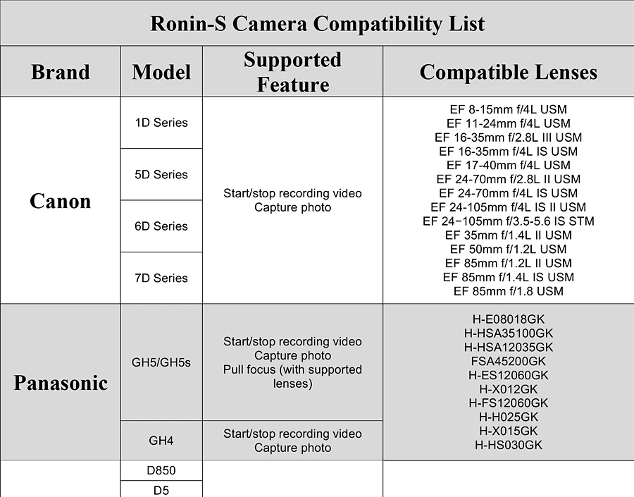 Улучшенный 3-осевая стабилизация 3,6 кг тестирование нагрузки Ёмкость [2] Управление камерой Совместимость с аксессуарами Pro Управление фокусировкой Автоматизированные смарт-функции Угловой рулонный мотор