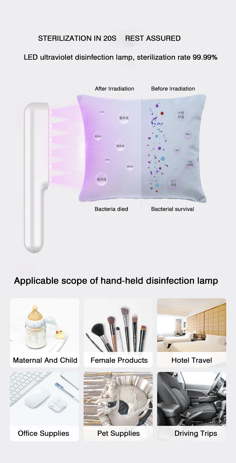УФ лампа стерилизатор портативный СВЕТОДИОДНЫЙ УФ-светильник дезинфицирующая палочка Мини Ручной дезинфицирующее средство Esterilizador 2000mAh для дома путешествия