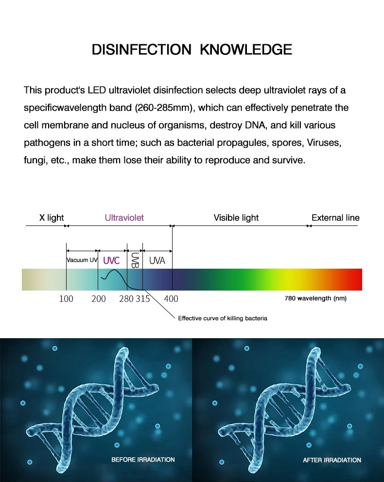 Название: УФ-лампа для дезинфекции Напряжение: DC5V/1A Цвет: белый, розовый Материал: ABS + PP + PC Размер изделия: 219*34*40 мм Размер посылка: 240,5*60*65,5 мм Вес нетто: 270 г Емкость аккумулятора: 2000 мАч Длина волны лампы: 265нм Номинальная мощность: 7 Вт Источник света: UV-C ультрафиолетовый светильник