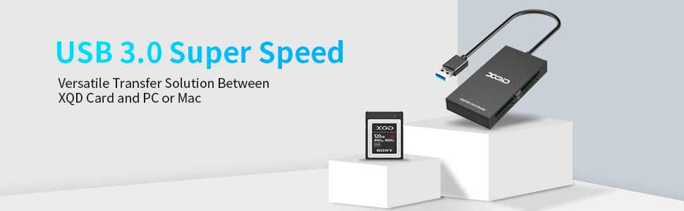 2. 【Предназначен для фотосъемки 】 USB 3,0 XQD ридер предназначен для фотографов, которые легко загружать фотографии и видео 4K с устройства чтения карт XQD на ноутбуки/Компьютеры через интерфейс USB 3,0, предлагаем Вам универсальное решение для переноса между многоформатными картами памяти и ПК или планшетом.