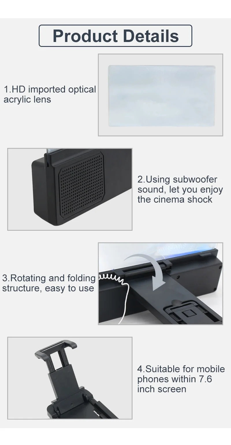 Увеличительная лупа для экрана HD мобильный телефон, 12 дюймов, с проводным динамиком