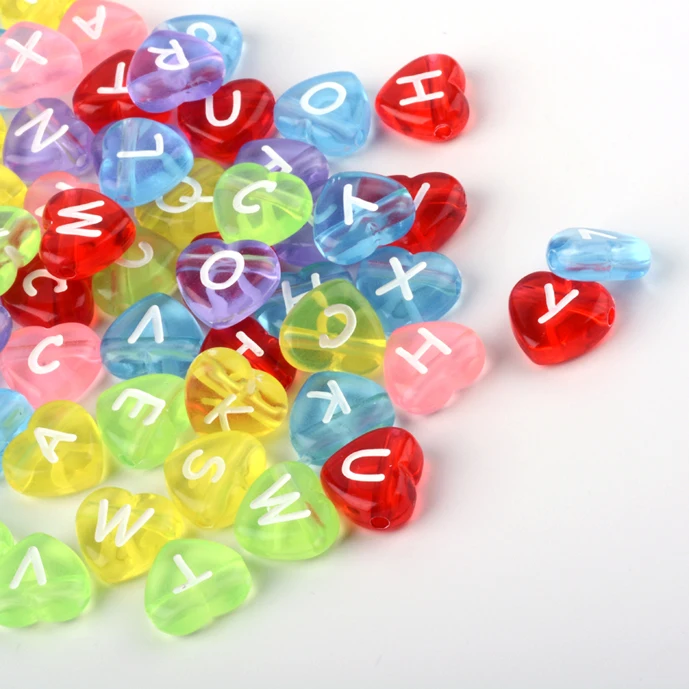 100 шт прозрачный Акриловый Алфавит сердца бисер смешанный цвет для ожерелья браслет сделай сам Изготовление ювелирных изделий 10.5x11.5x4.5mm