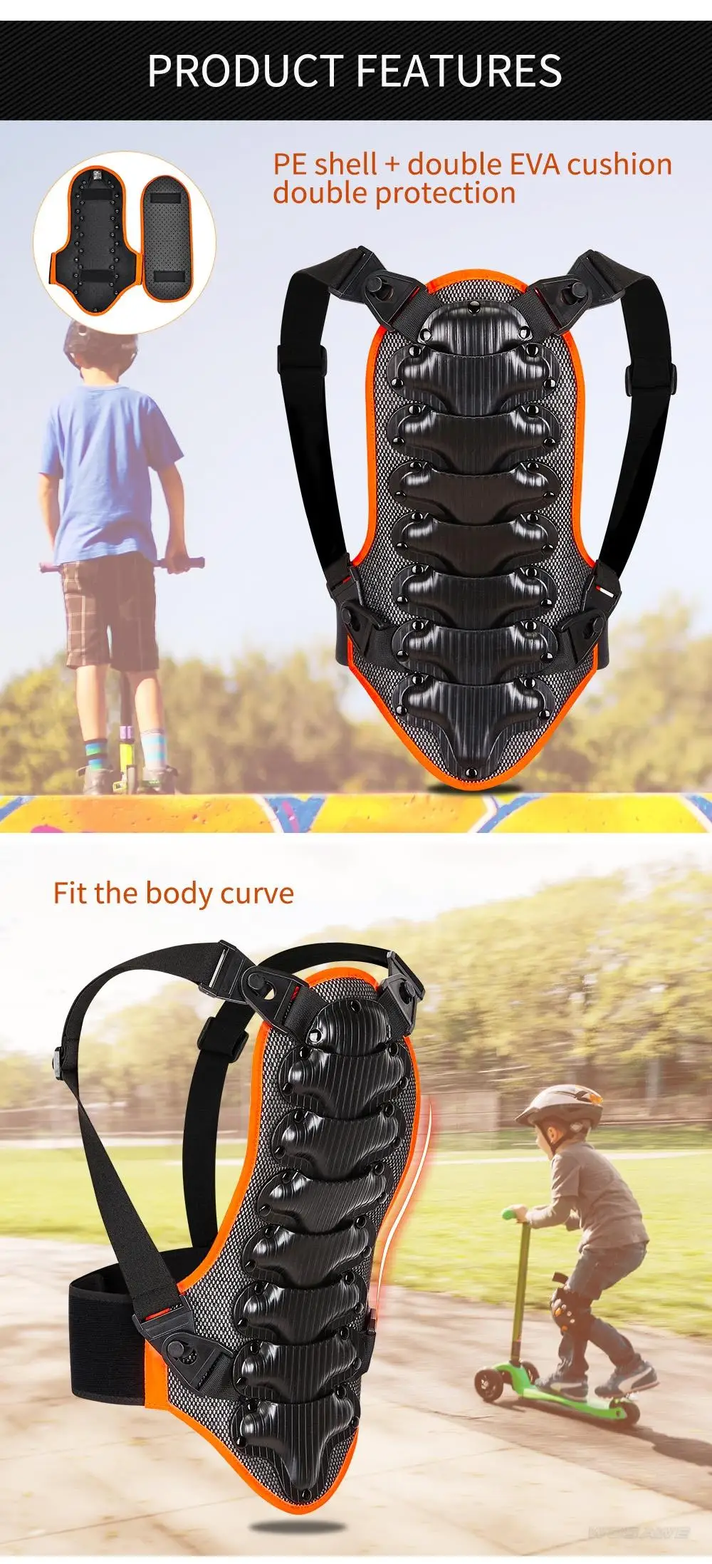 Защита спины WOSAWE для детей может уменьшить травму, вызванную падением во время езды, защитить спину ребенка, подходит для занятий спортом на открытом воздухе, например, езды на мотоцикле, велоспорта, скейтбординга, катания на лыжах и т. д.